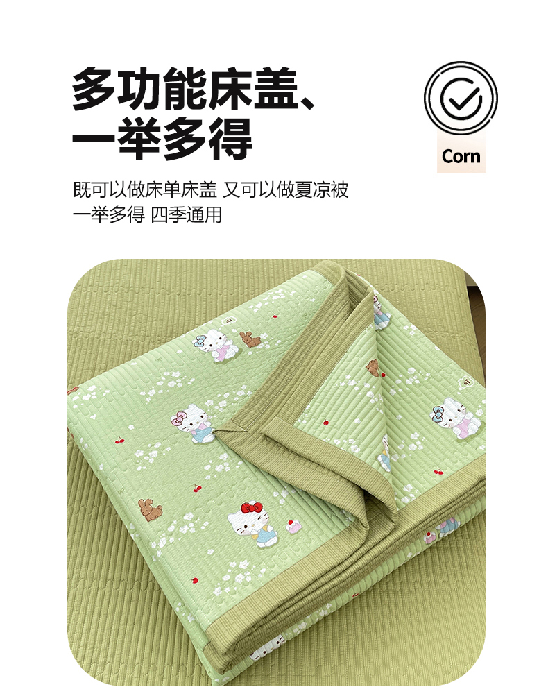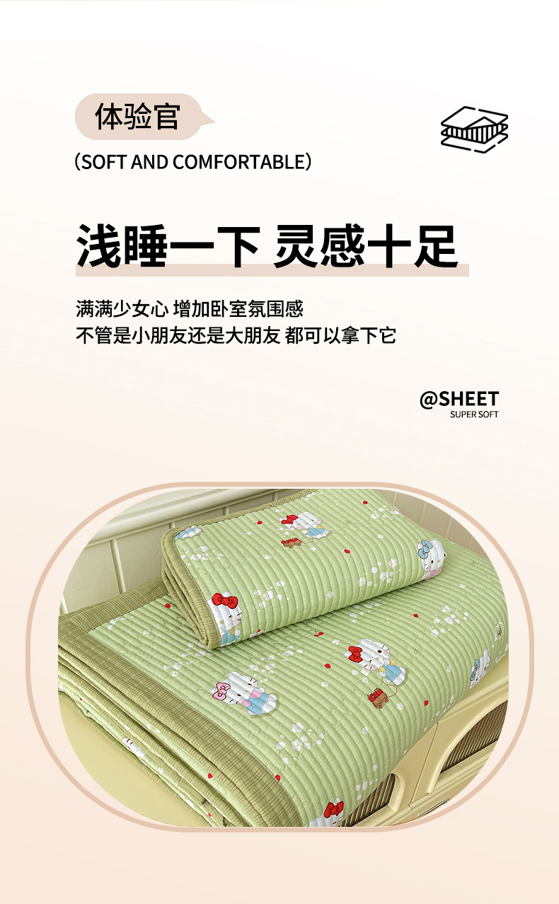 (总)梵朴 2026新款直播A类冰豆豆凉席三件套凉豆豆软凉席可机洗空调席子-升级抗起球,卡皮巴拉-灰,卡皮巴拉-绿,LUCK熊-粉,LUCK熊-灰,LUCK熊-蓝,LUCK熊-绿,组合图