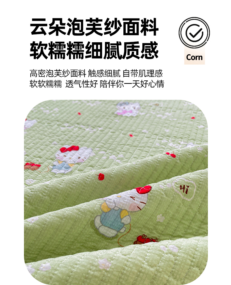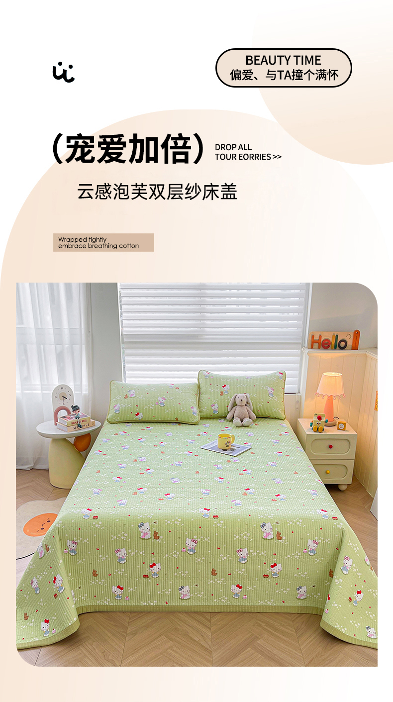 当前位置: 91家纺网 > 商品网购 > 床上用品 > 床盖 > 梵朴 2026新款A类泡芙双层纱云感邹邹纱床盖三件套 泡芙KT-绿