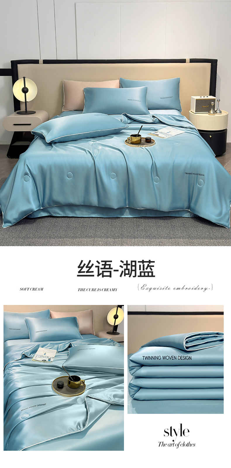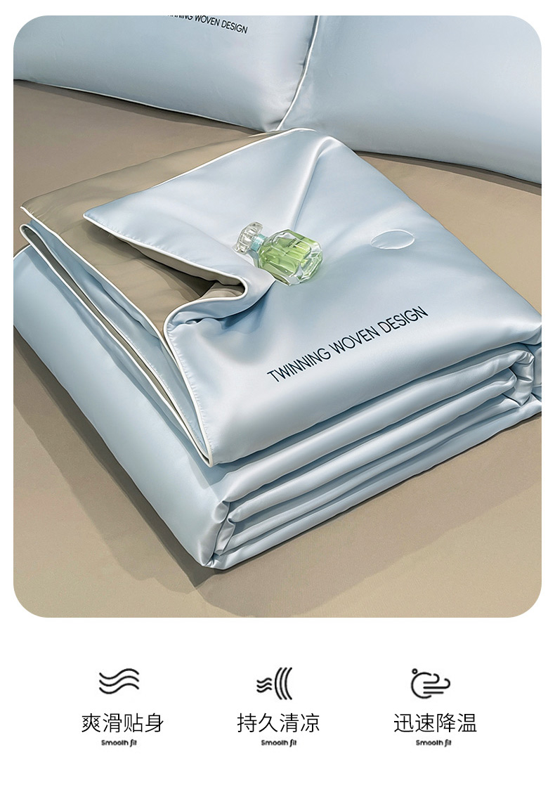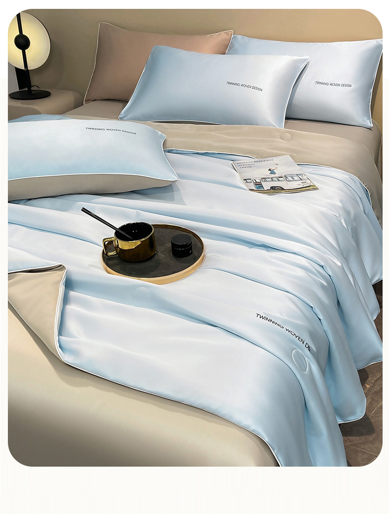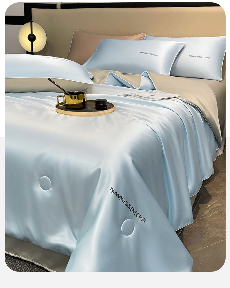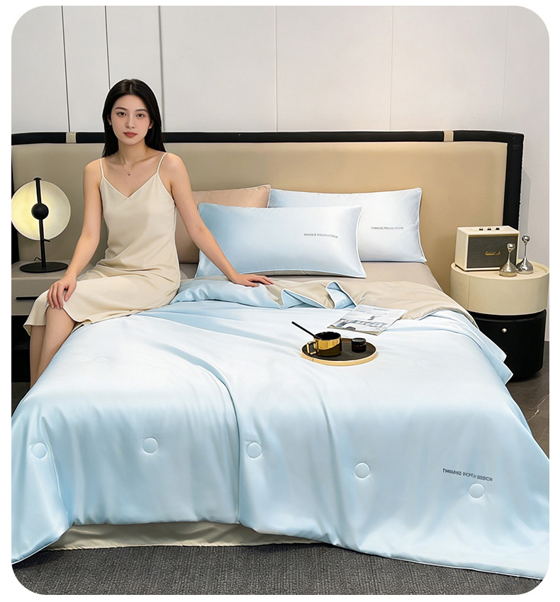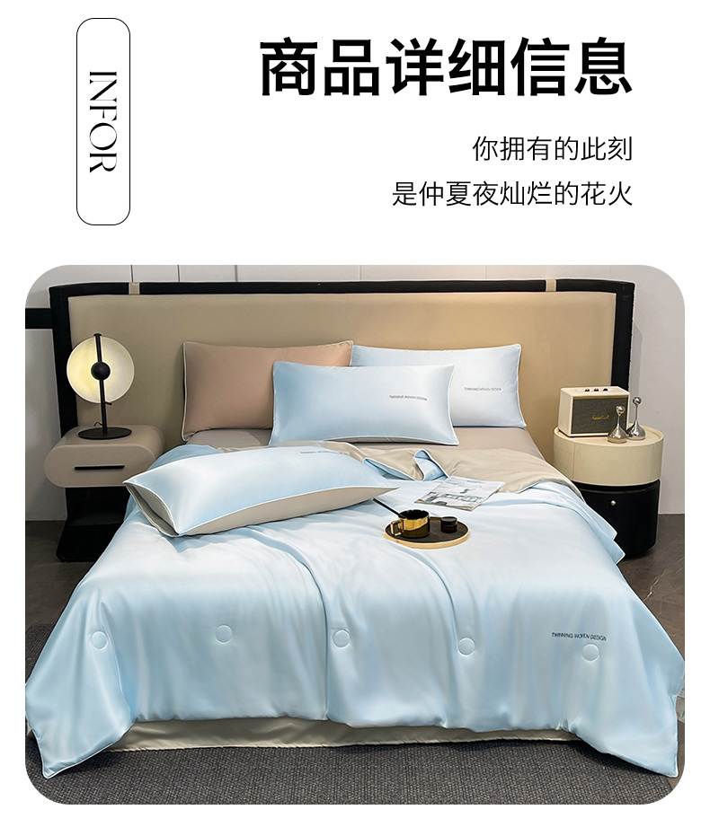 • 91家纺网 家纺一手货源 找家纺 招财星家纺 2026新款可水洗真丝被夏天空调被单人夏凉被冰丝夏被被子双人薄被(带质检报告买家秀) 丝语-水蓝+银灰