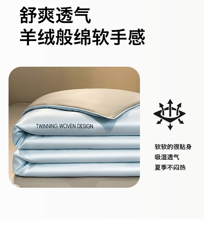 • 91家纺网 家纺一手货源 找家纺 (总)招财星家纺 2026新款可水洗真丝被夏天空调被单人夏凉被冰丝夏被被子双人薄被(带质检报告买家秀),丝语-粉玉+银灰,丝语-湖蓝,丝语-奶白,丝语-奶咖+暖棕,丝语-青果绿+银灰,丝语-深海蓝+水蓝,丝语-水蓝,丝语-水蓝+银灰