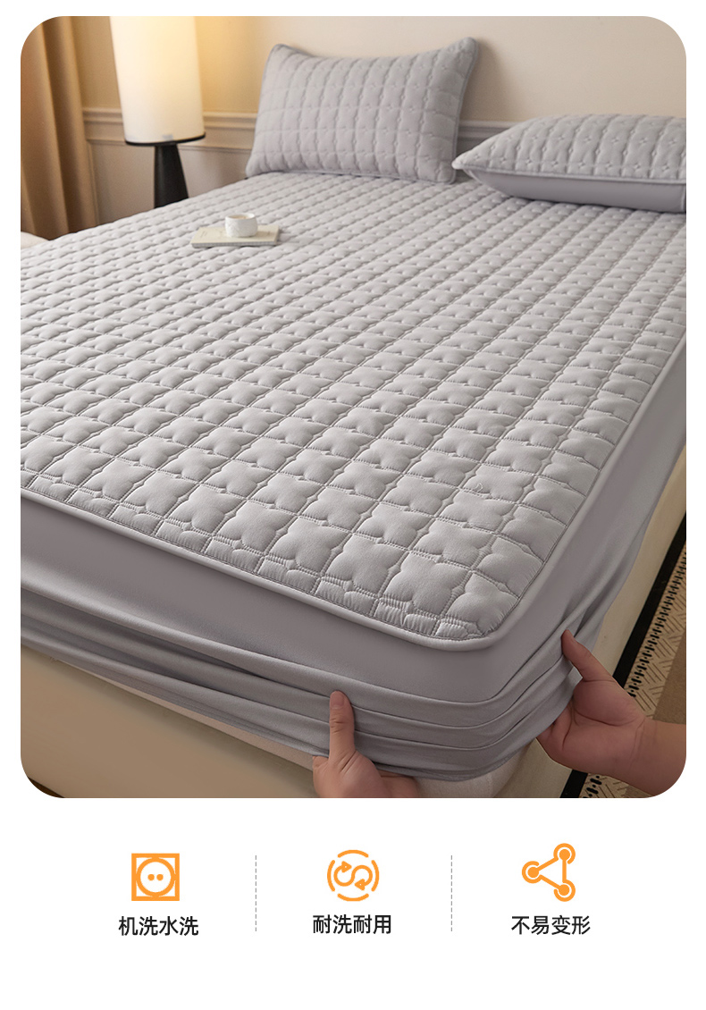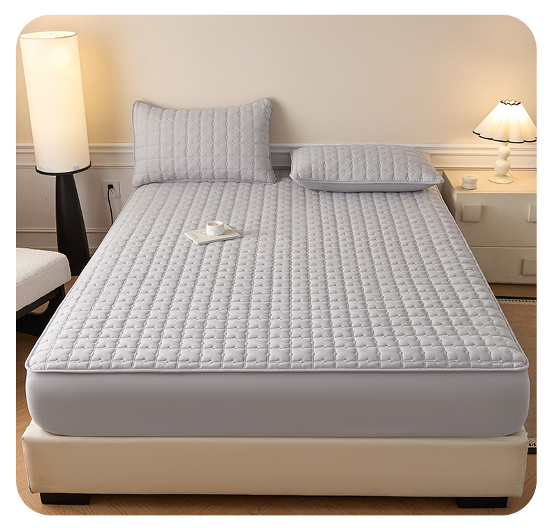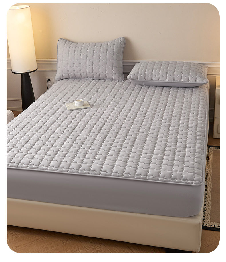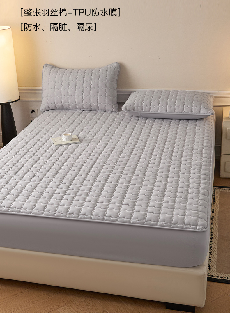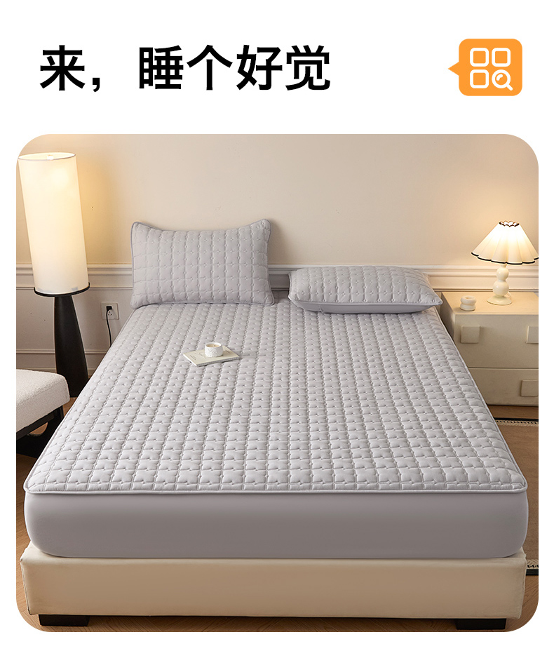 • 91家纺网 家纺一手货源 找家纺 优眠坊 2026新款夹棉床笠/防水床笠   床笠三件套 格趣-浅灰-防水款