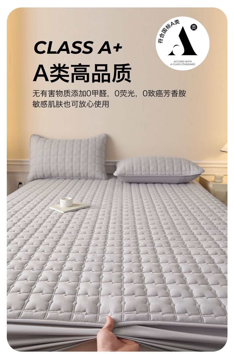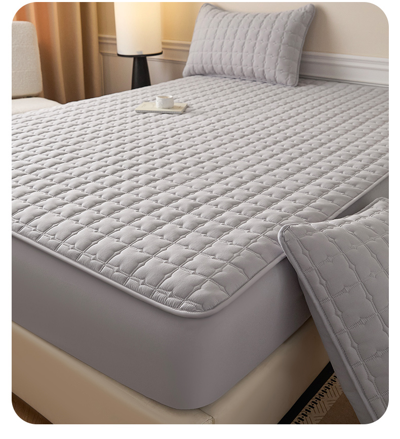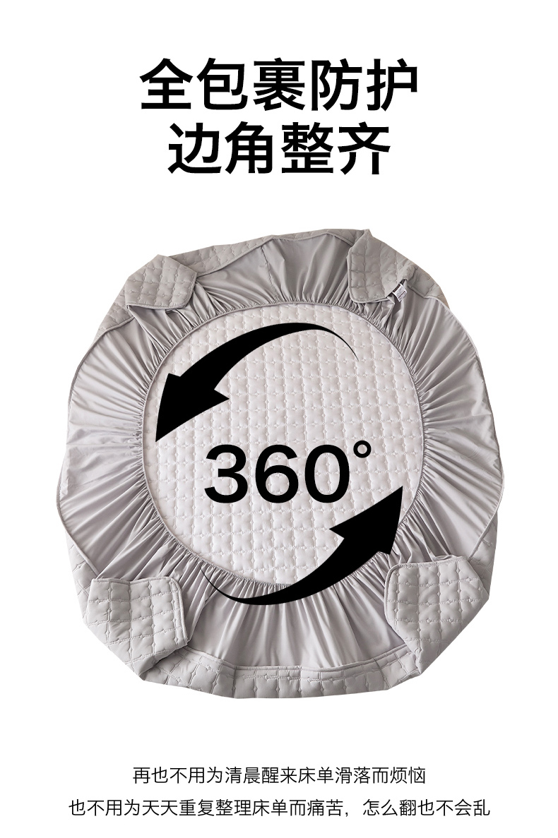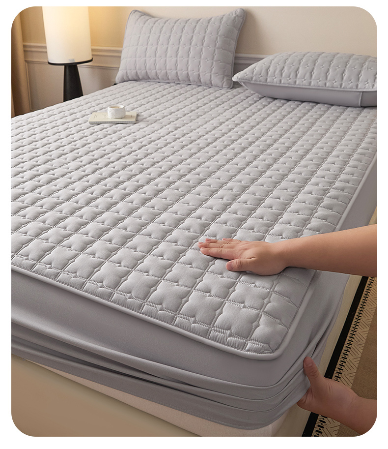 • 91家纺网 家纺一手货源 找家纺 优眠坊 2026新款夹棉床笠/防水床笠   床笠三件套 格趣-浅灰-防水款