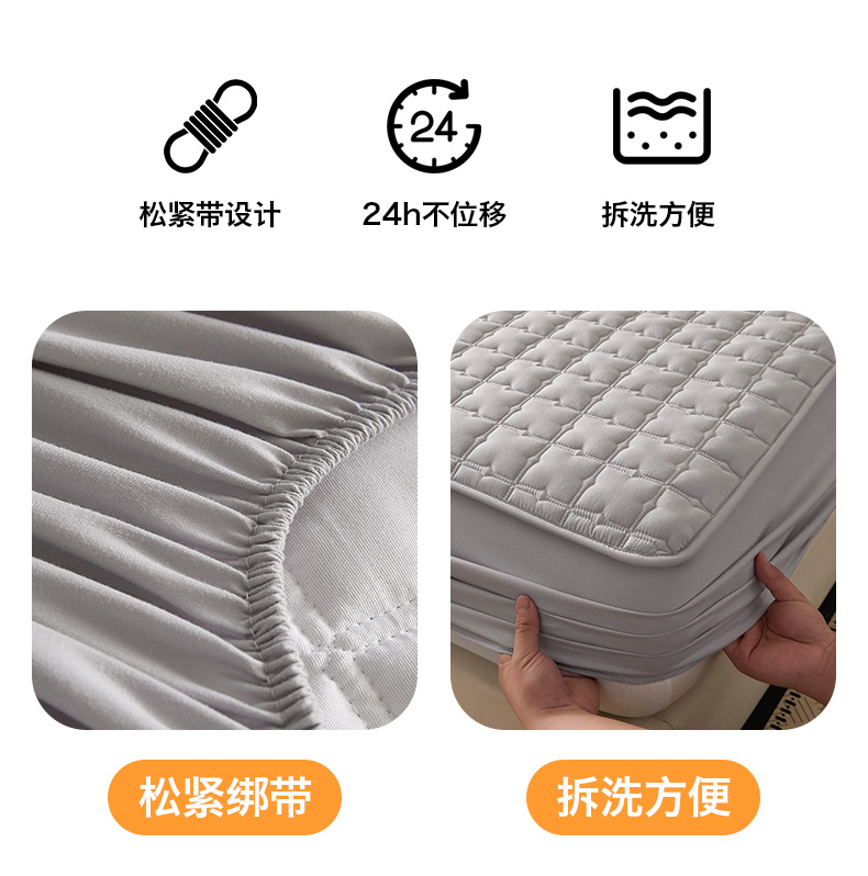 优眠坊 2026新款夹棉床笠/防水床笠 床笠三件套 格趣-浅灰-防水款