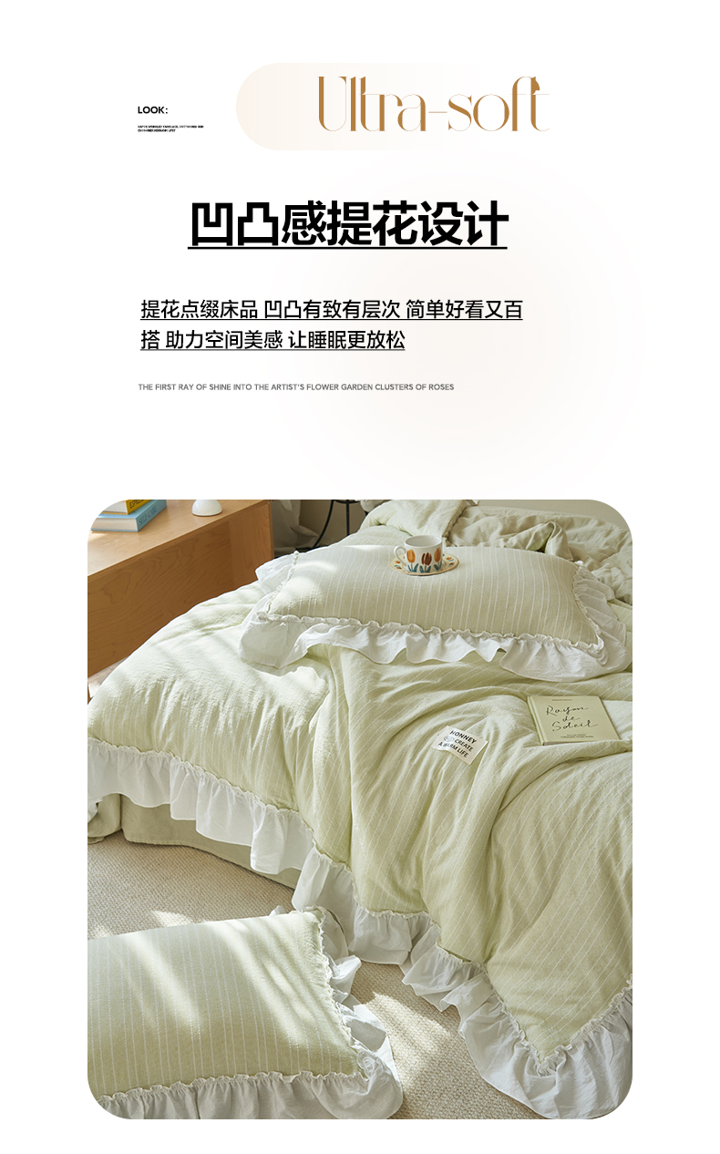 当前位置: 91家纺网 > 商品网购 > 床品套件 > 四件套 > 夏被四件套 > 晨曦家纺 2026新款荷叶花边泡芙纱提花夏凉被四件套可水洗棉夏被四件套少女风 樱花粉茶
