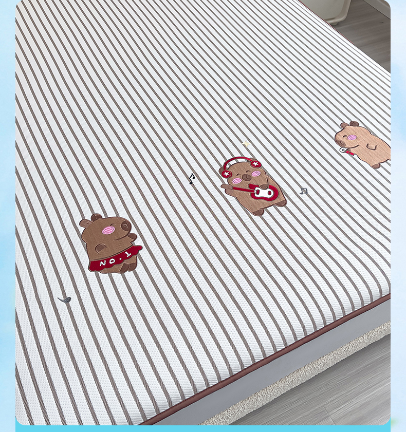 炫拼家纺 2026新款A类凉豆豆提花条纹卡通刺绣床笠席 条纹-淘气猫