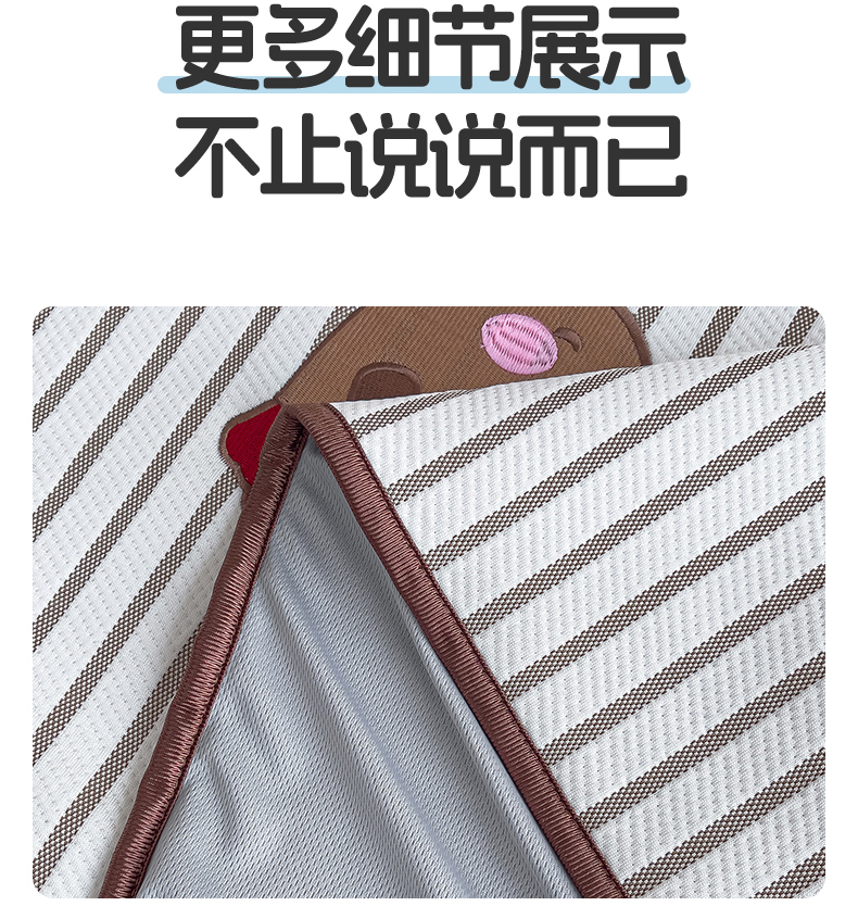 商品名称:炫拼家纺 2026新款A类凉豆豆提花条纹卡通刺绣床笠席 条纹-淘气猫
