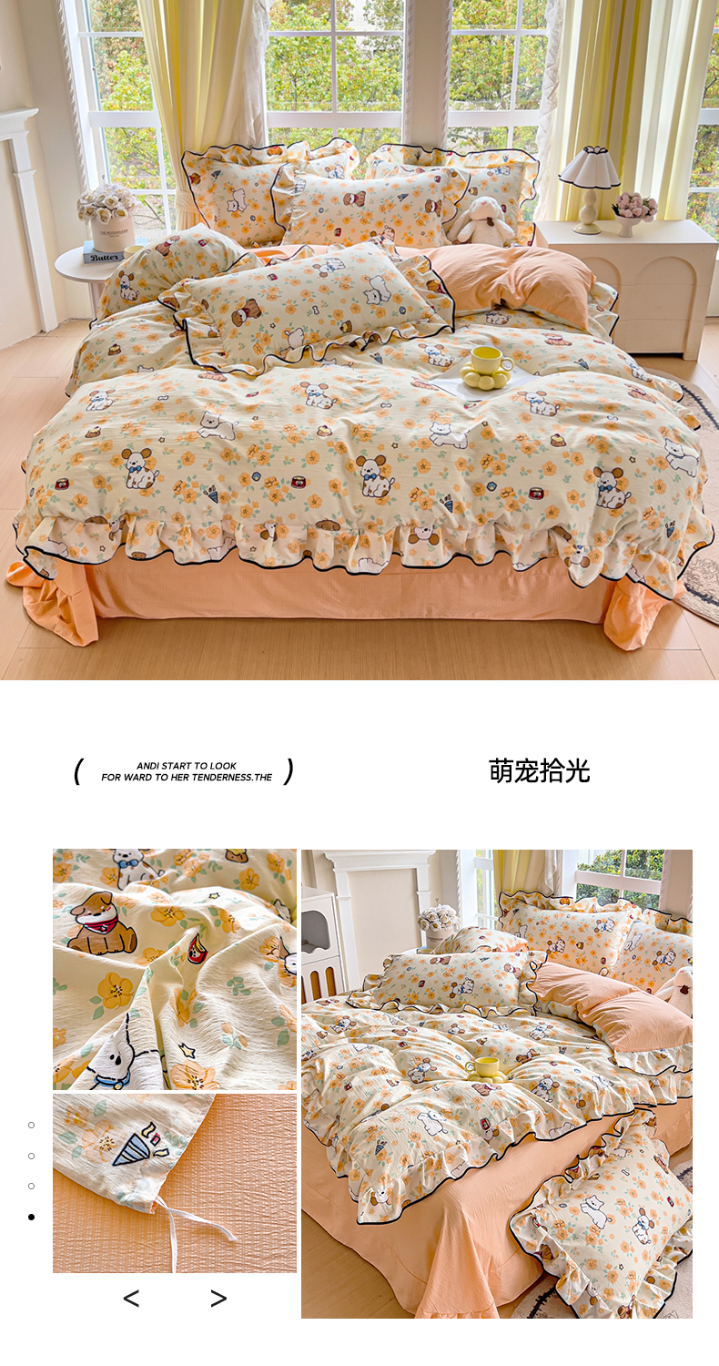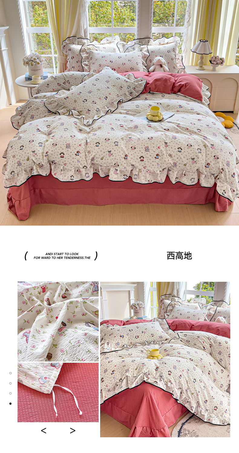 商品名称:(总)找底底家纺 2026新款A类泡泡棉双层纱四件套花边夏被四件套