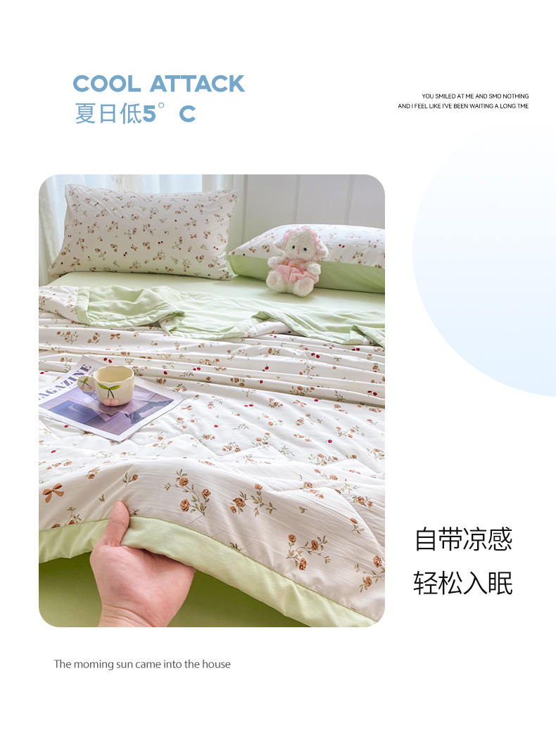 商品名称:欧雅搁家纺 2026新款凉感丝滑小冰被夏被夏凉被空调被 甜莓倚香