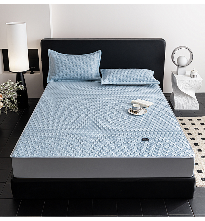 慕木家纺 2026新款A类复合三明治PE乙纶提花冰豆豆凉席床笠海之恋系列(提供买家秀) 海之恋-蓝床席款