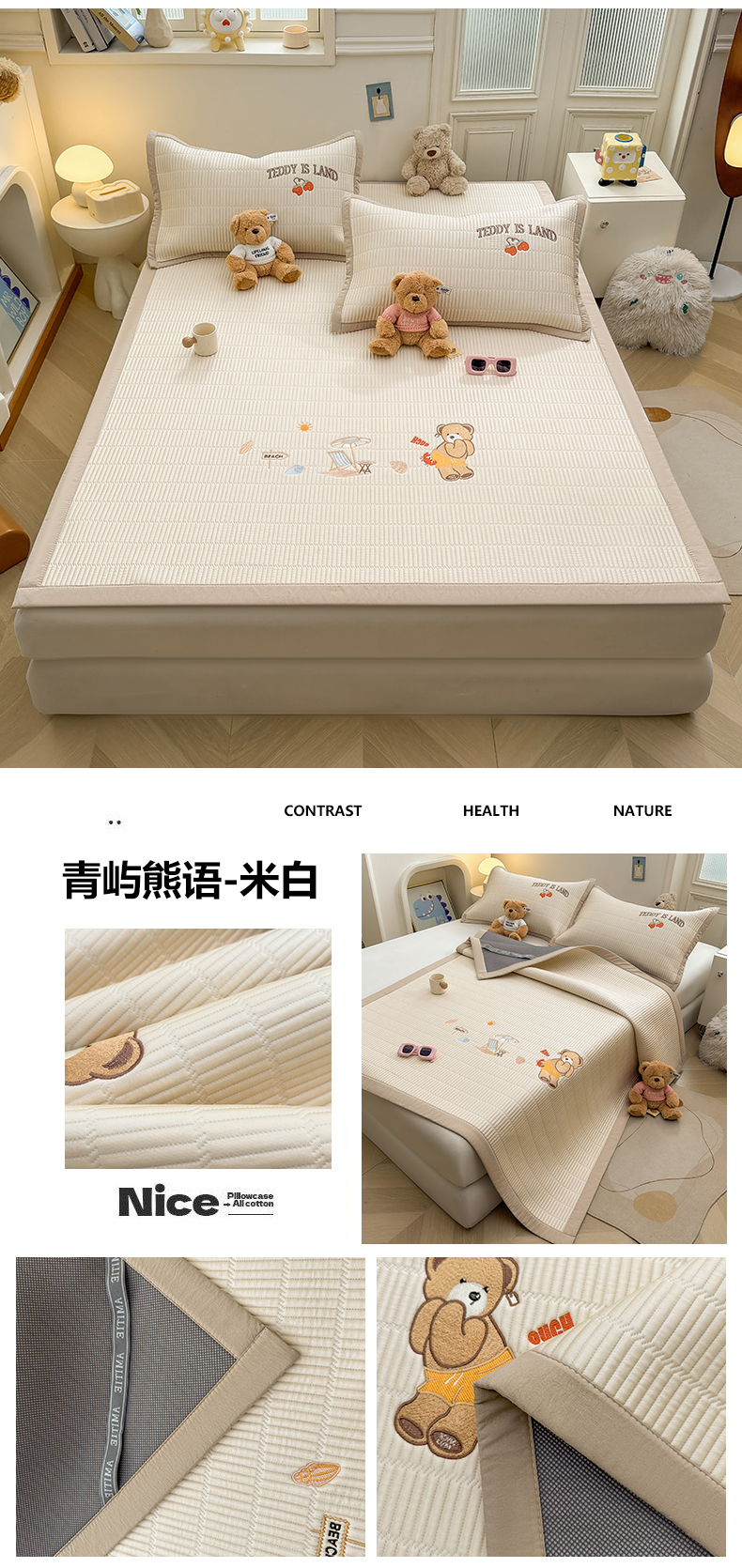 当前位置: 91家纺网 > 商品网购 > 床上用品 > 凉席 > 凉席套件 > 慕木家纺 2026新款A类高端刺绣pe乙纶冰豆豆席爱兰系列正版授权(提供买家秀) 粉莓熊眠-粉床笠款