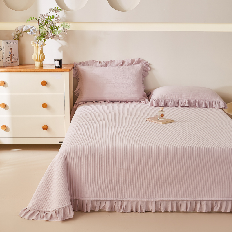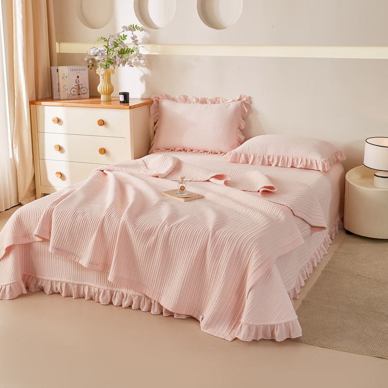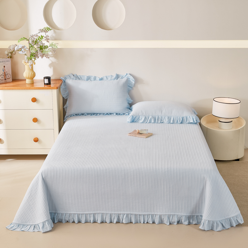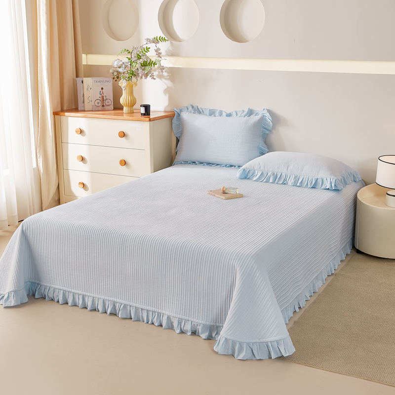 商品名称:玖玖爱家纺 2026新款高端A类夹棉水洗母婴级莱赛尔天丝床盖裙边凉席三件套 晴空蓝