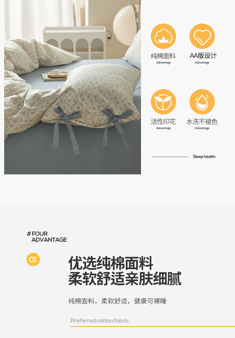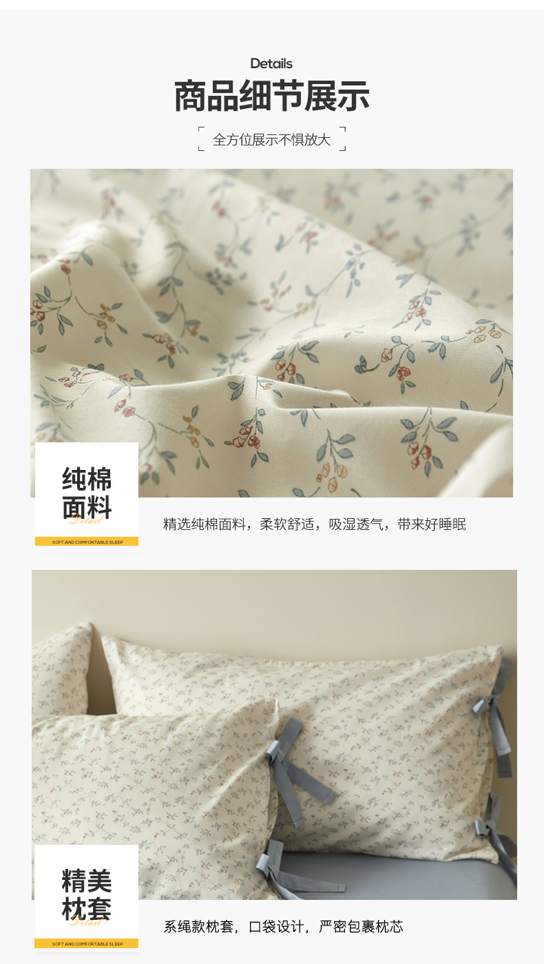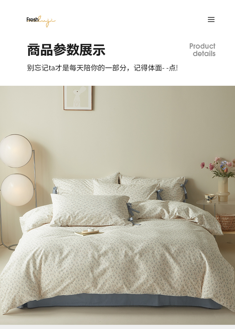(总)绫韵家纺 2026新款全棉ins小碎花13372纯棉田园风简约四件套,陌上秋,轻语·米,桃点点,条纹小猫,兔趣花园,乡村爱情,星星花,伊涅芙