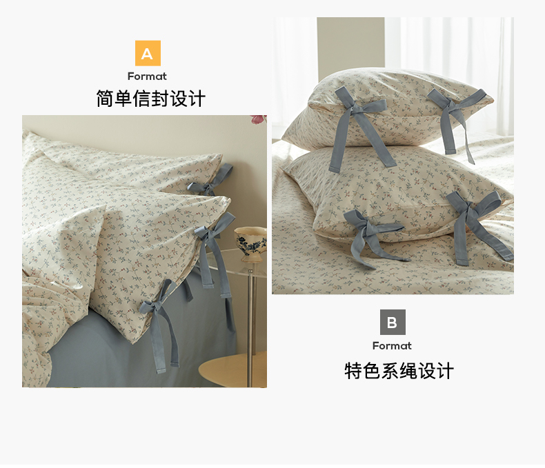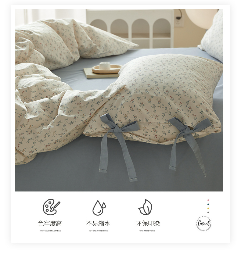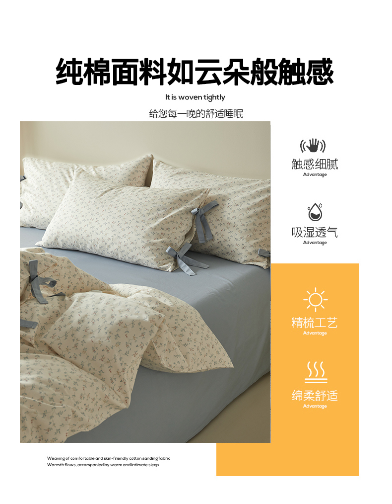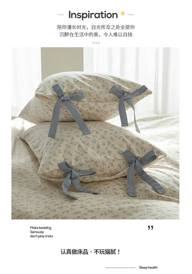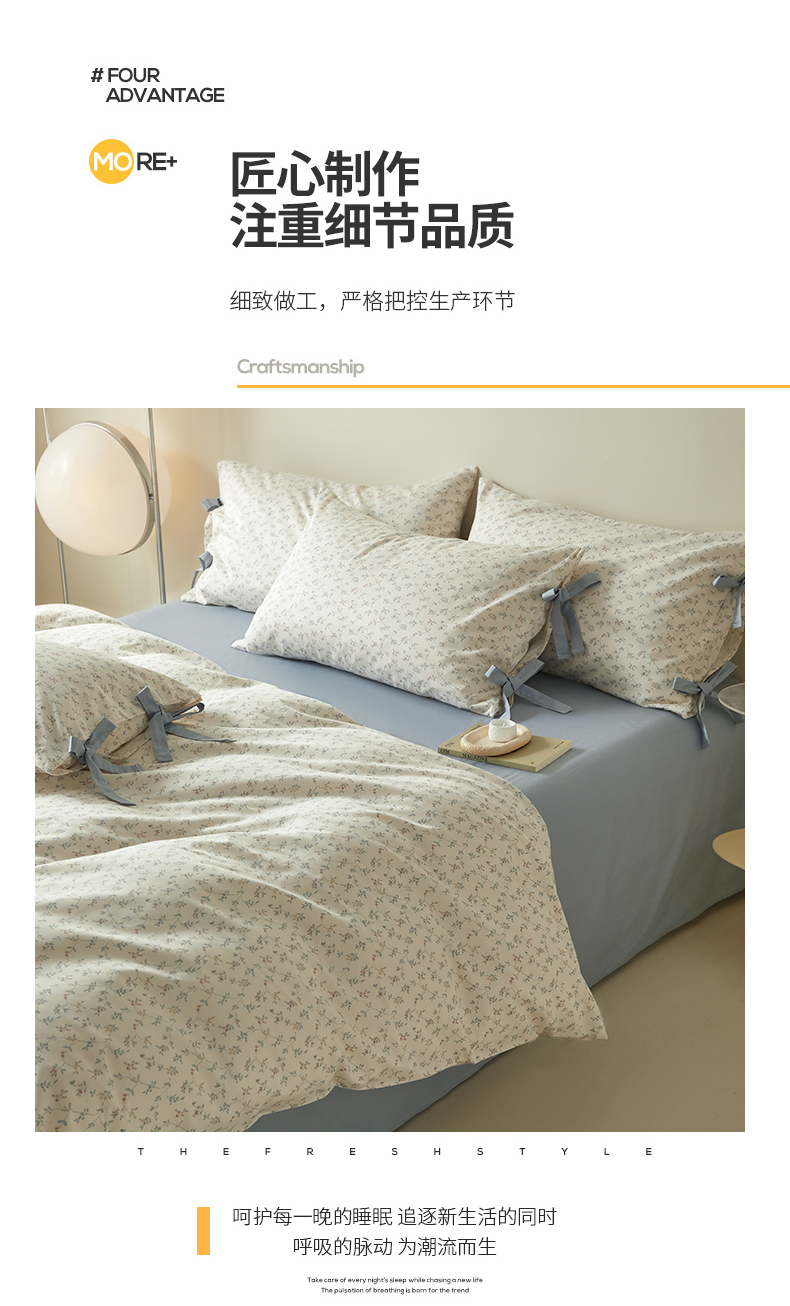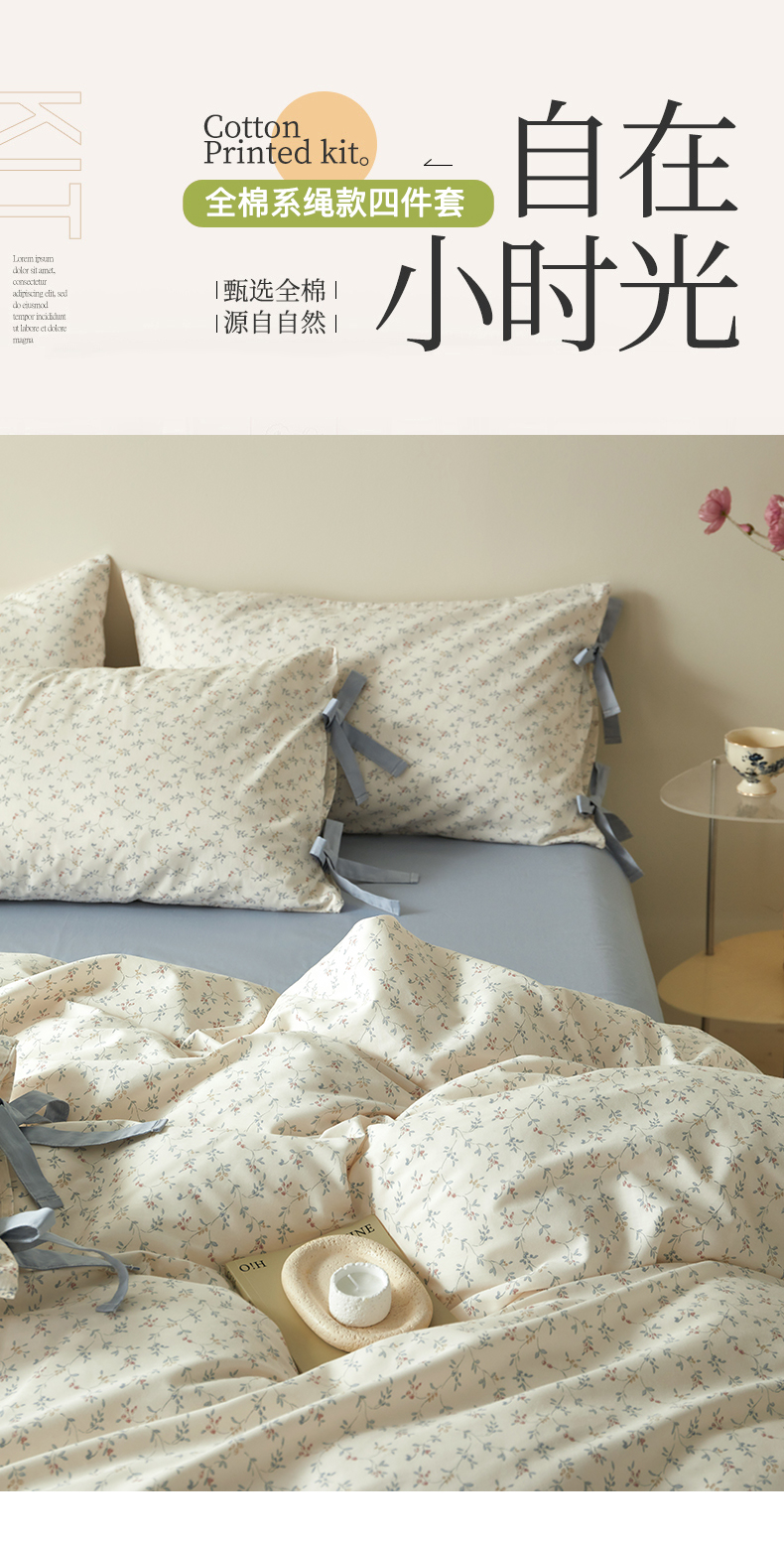 (总)绫韵家纺 2026春夏新款13372全棉ins小碎花纯棉田园风床单床笠四件套系绳蝴蝶结系列,贝贝利亚,沉香,丹恒,花田喜事