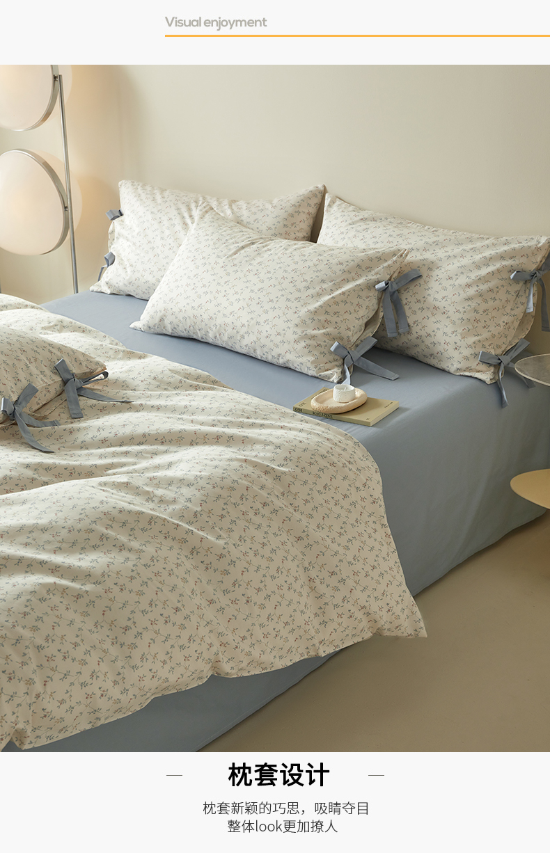 商品名称:绫韵家纺 2026新款春夏13372全棉蝴蝶结四件套系列 人间浪漫