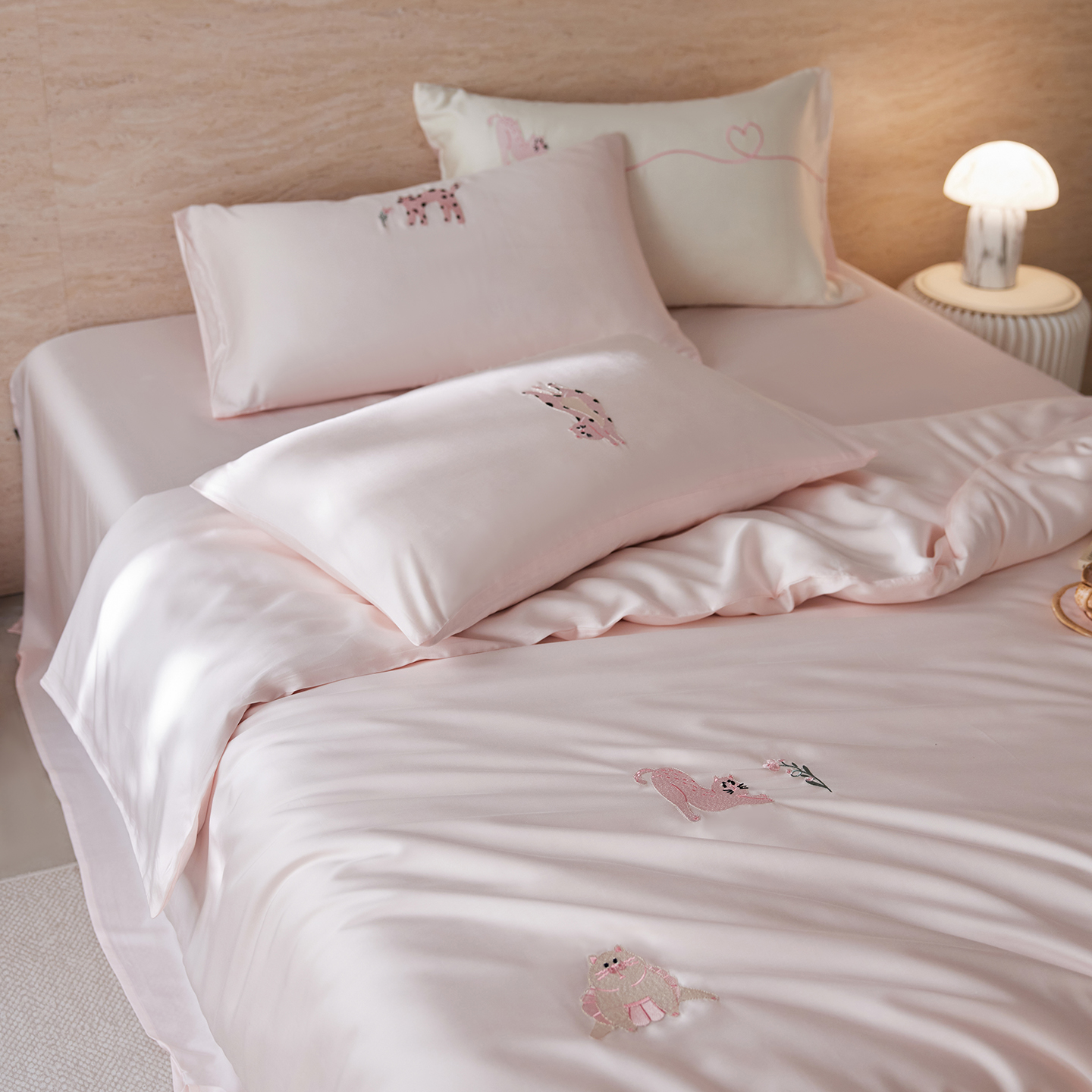 商品名称:(总)风向标家纺 2026新款兰精天丝绣花四件套-萌宠系列