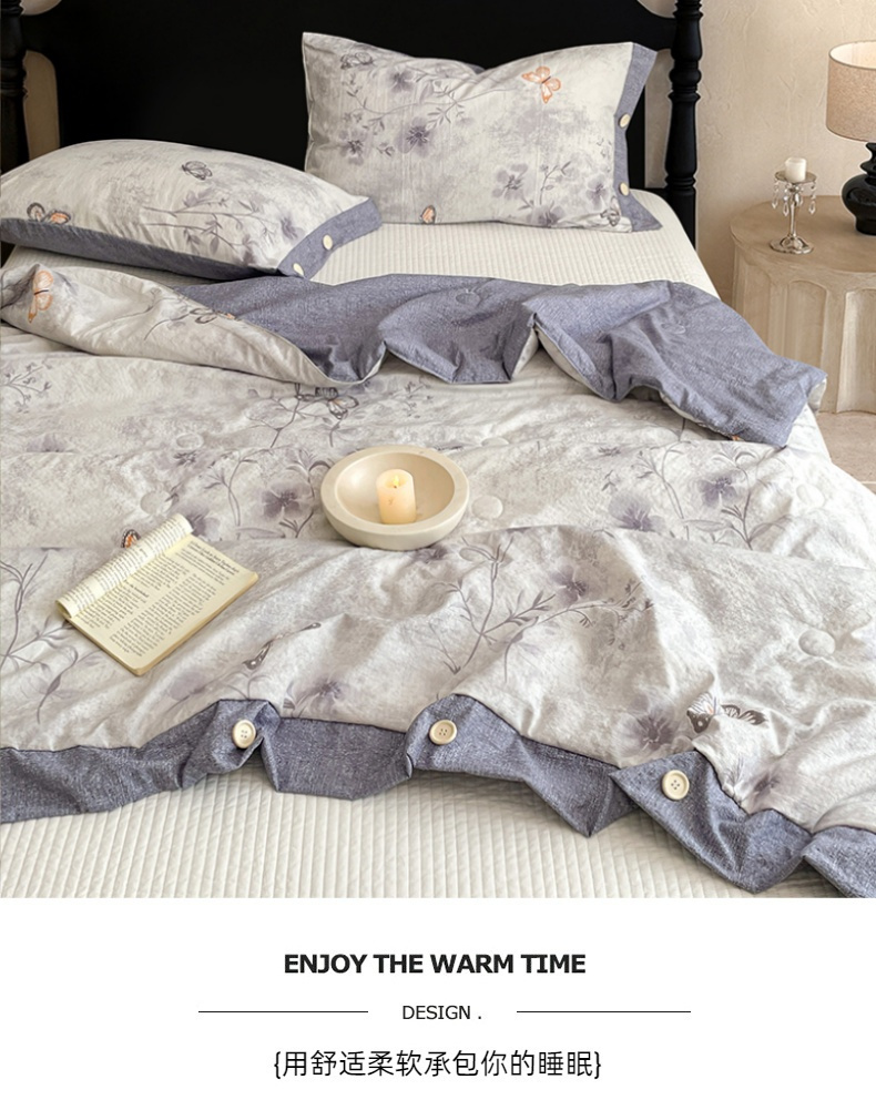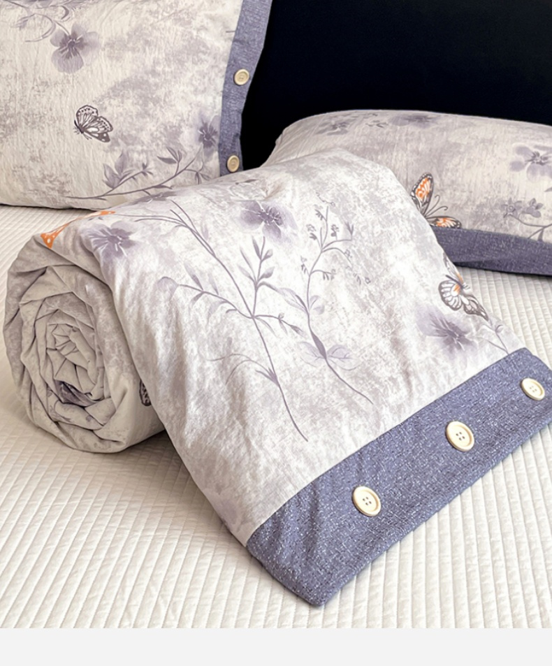 梦舒羽 2026新款A类夏天原麻纽扣加厚夏被宿舍双人床仿亚麻被子被芯 花与蝶