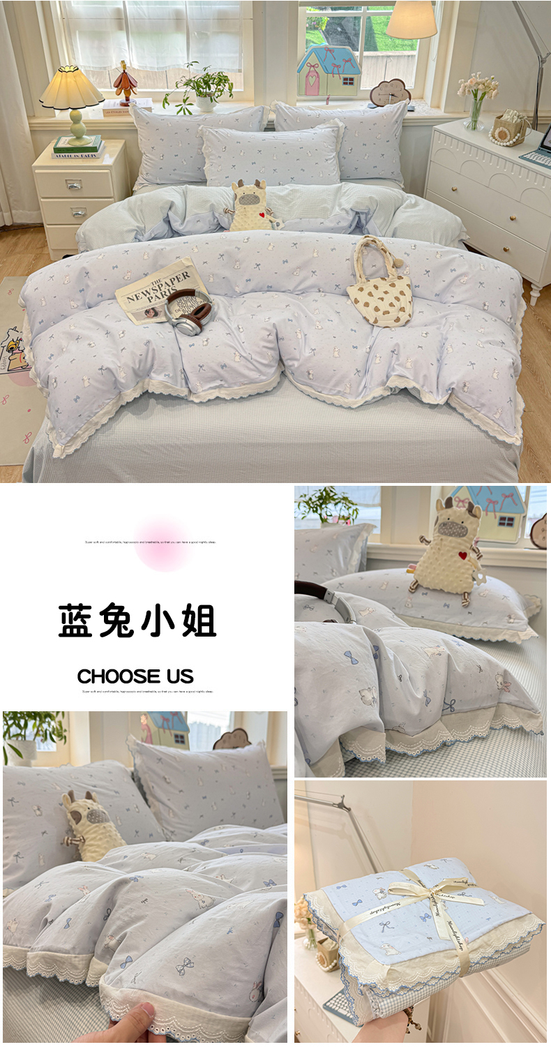 漫仙阁家纺 2026新款云感泡芙棉四件套 蓝兔小姐