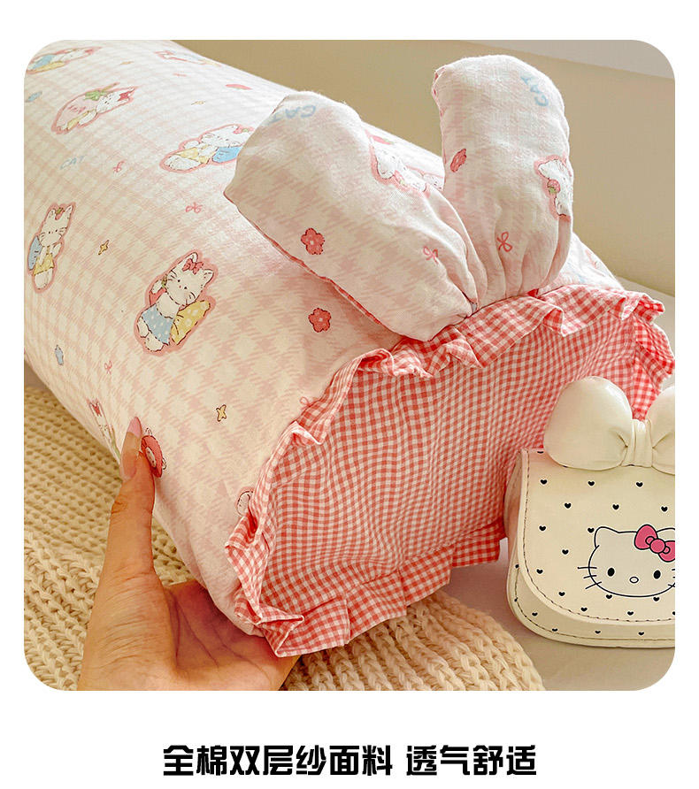 商品名称:梦叶草 2026新款全棉双层纱双人枕加大情侣双人枕头兔耳抱枕 猫咪公主