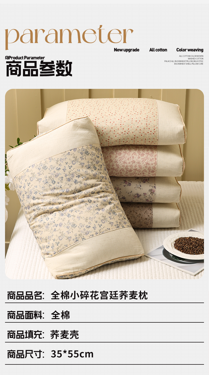 (总)梦叶草 2026新款全棉贴布绣小碎花荞麦枕头护颈枕芯,贴布绣小碎花荞麦枕-蛋白石绿35*55cm,贴布绣小碎花荞麦枕-皇家蓝35*55cm,贴布绣小碎花荞麦枕-宁静蓝35*55cm,贴布绣小碎花荞麦枕-苔藓绿35*55cm,贴布绣小碎花荞麦枕-胭脂红35*55cm