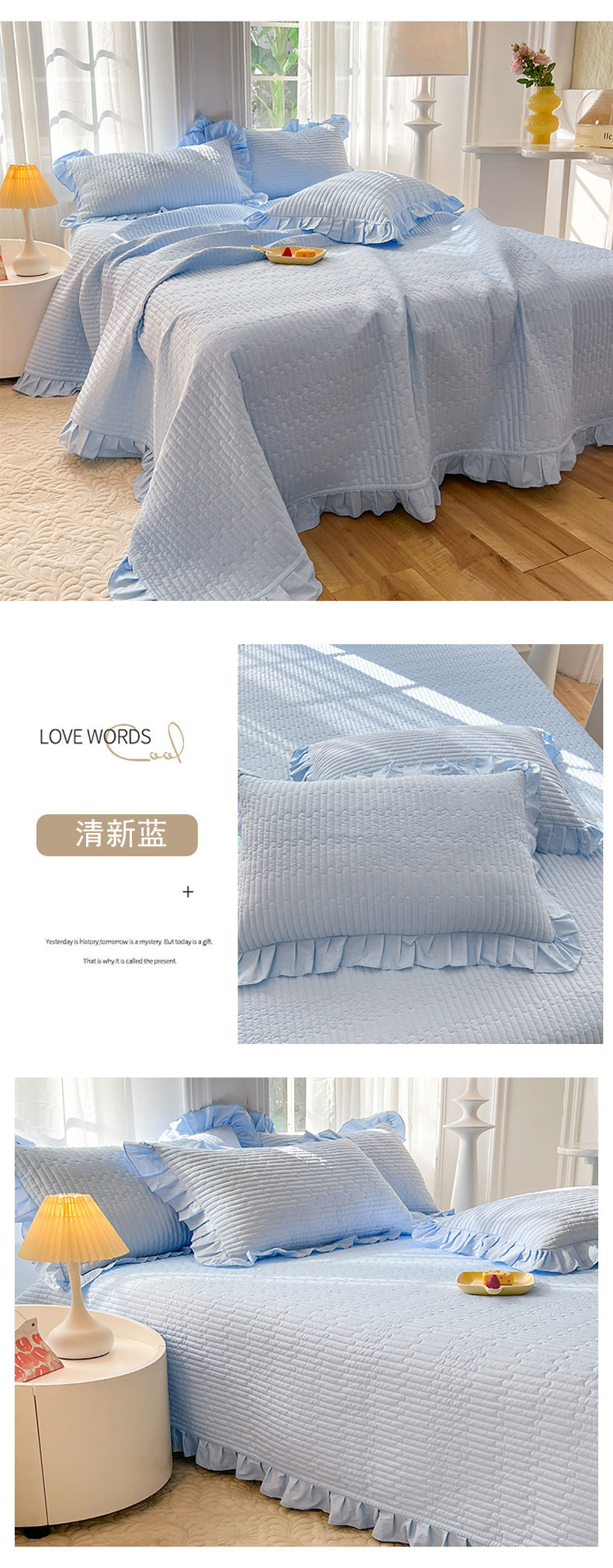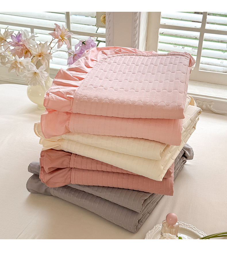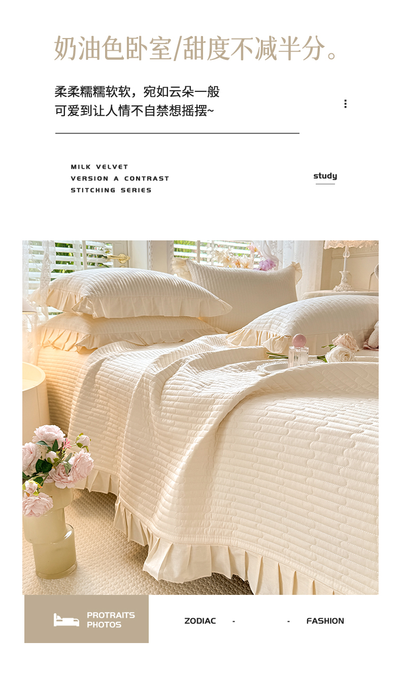 • 91家纺网 家纺一手货源 找家纺 (总)花香四季家纺 2026新款13376全棉夹棉床盖三件套13372纯棉纯色床盖花边公主风(可定制任意尺寸),薄荷绿,清新蓝,奶酪黄,气质灰,甜心粉,豆沙色,暮林绿,荔枝粉,象牙白,芝士黄,组合图