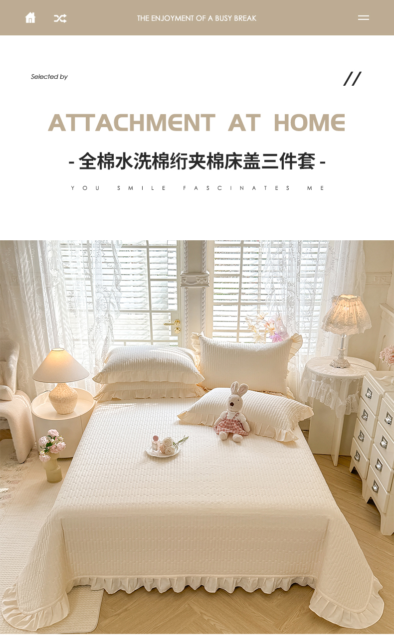 当前位置: 91家纺网 > 商品网购 > 床上用品 > 床盖 > 花香四季家纺 2026新款13376全棉夹棉床盖三件套13372纯棉纯色床盖花边公主风(可定制任意尺寸) 奶酪黄