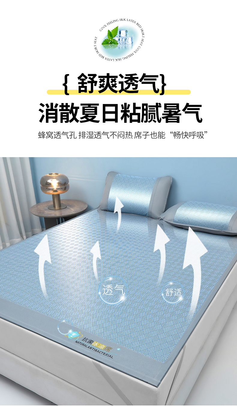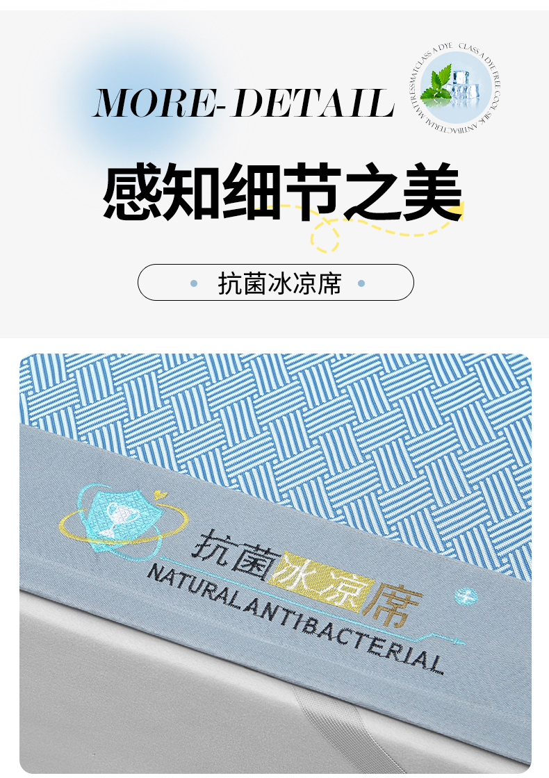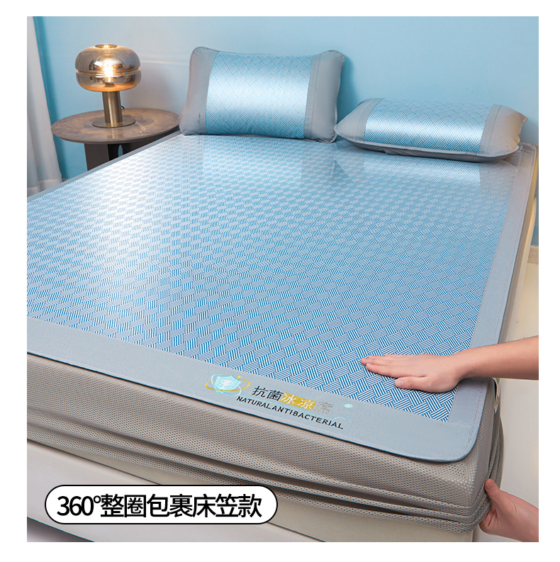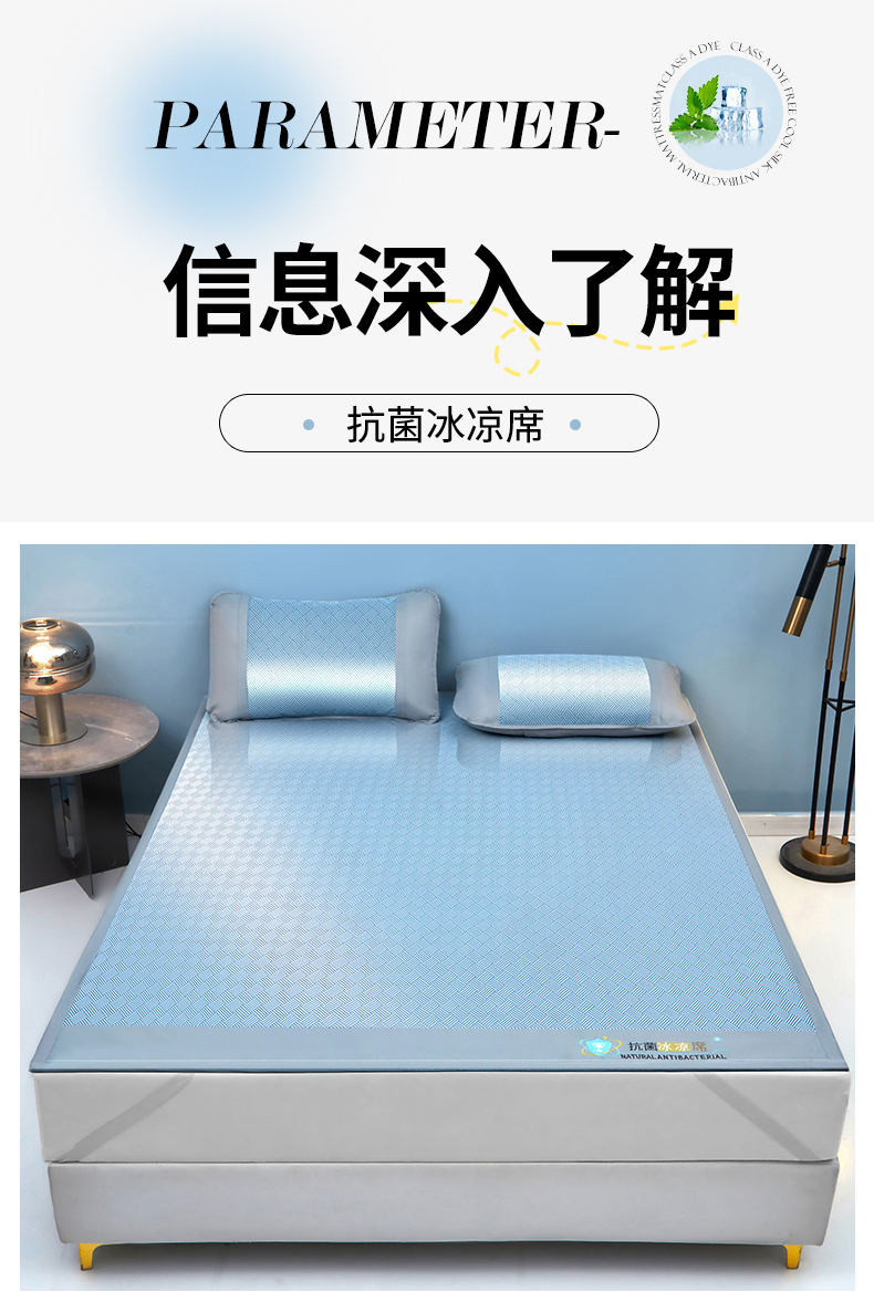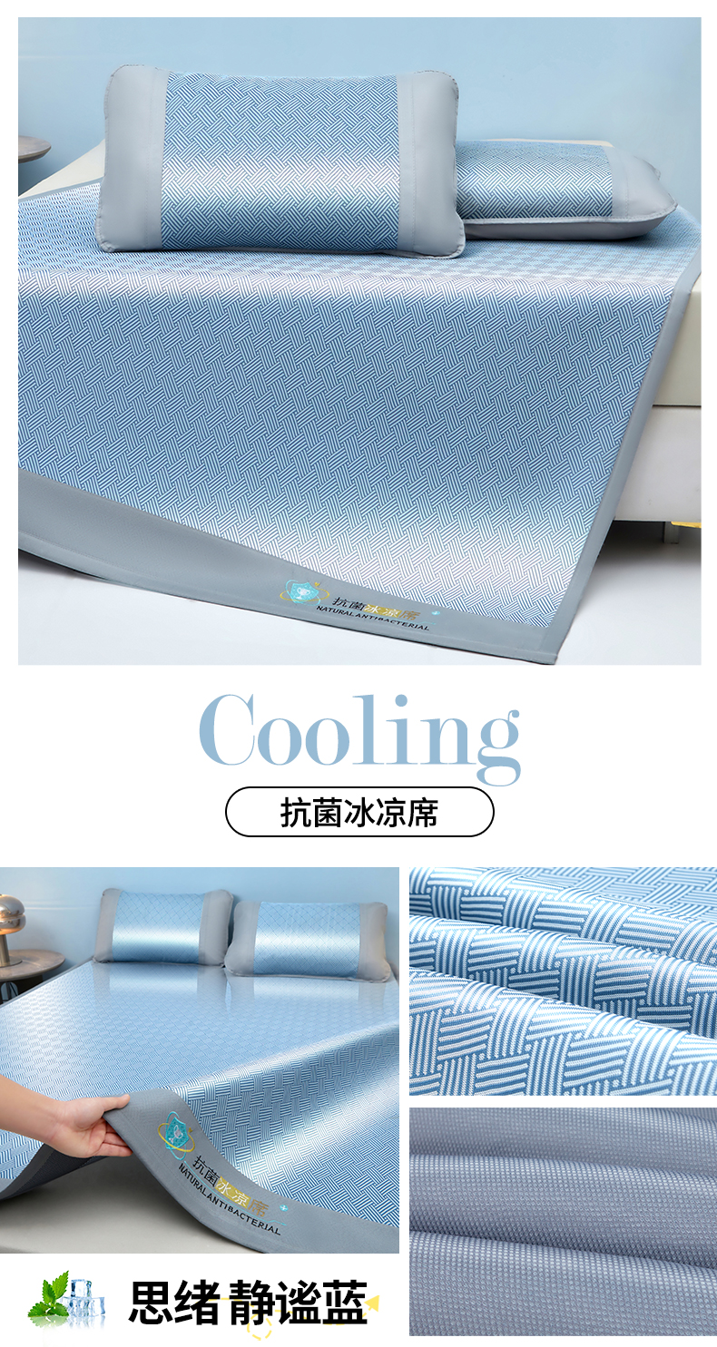 航途席业 2026新款抗菌三明治冰凉席床席床笠-思绪 思绪 静谧蓝床席款
