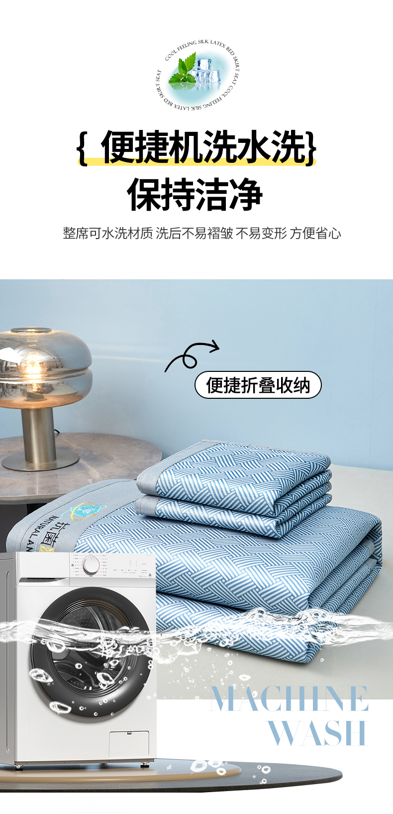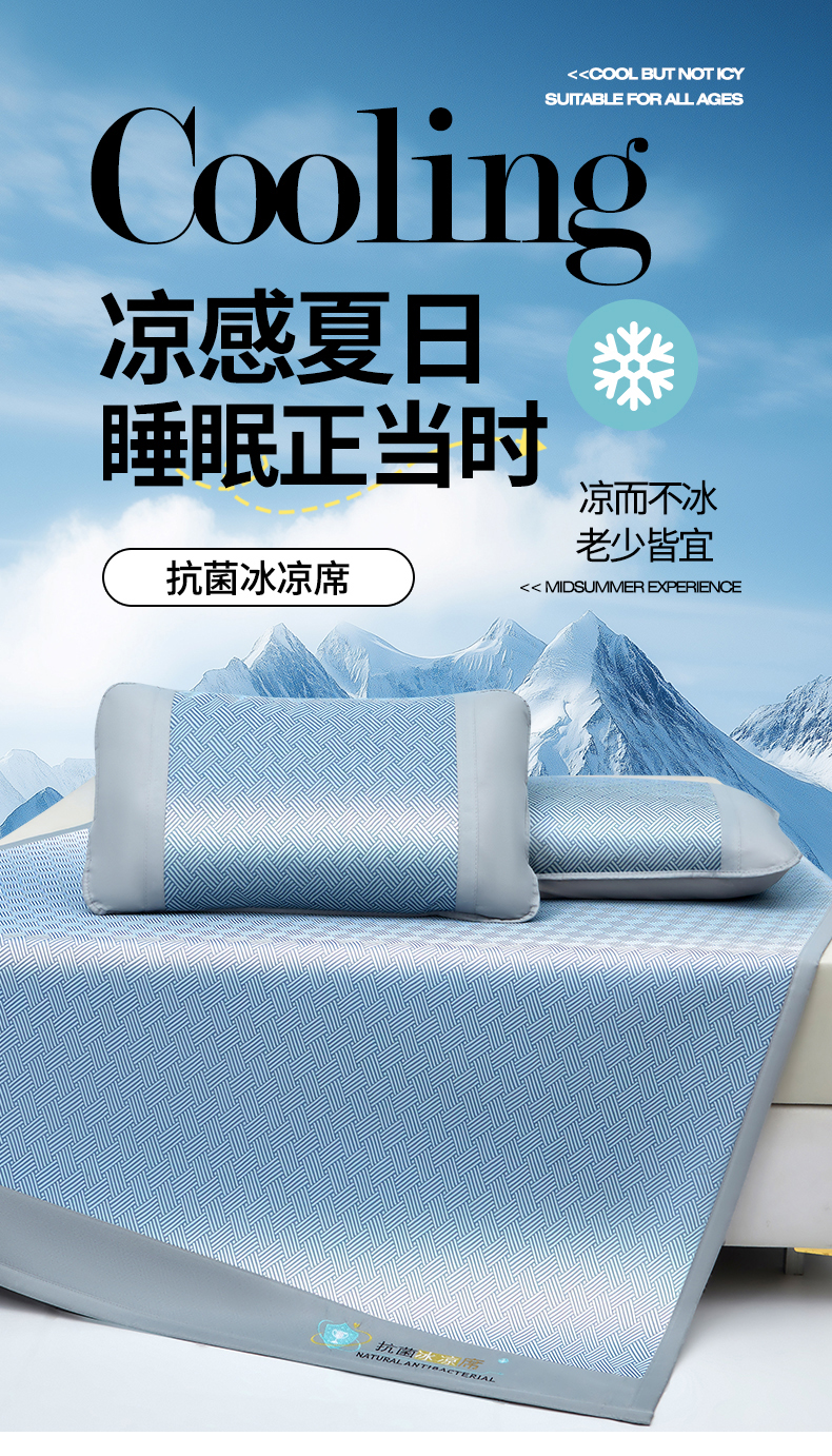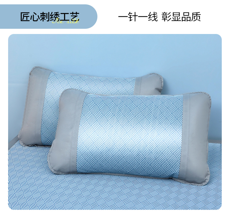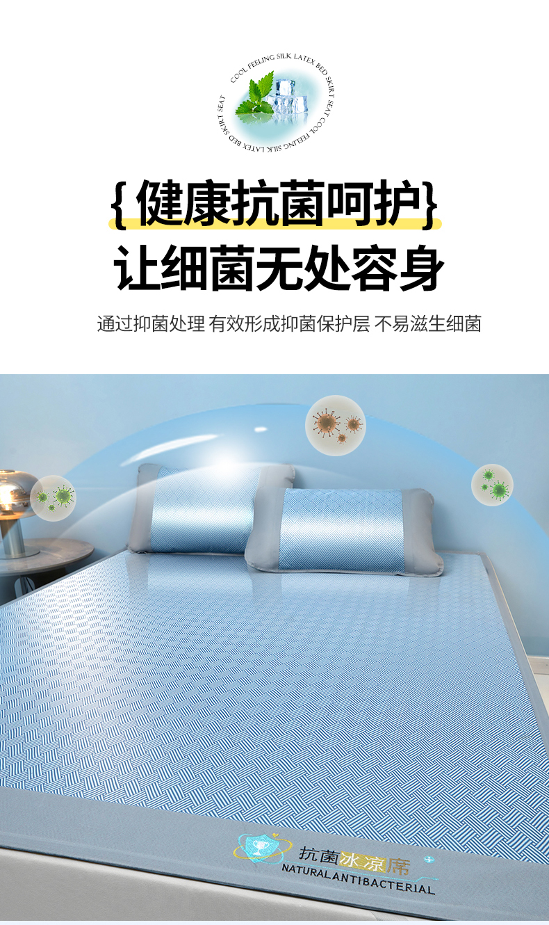 航途席业 2026新款抗菌三明治冰凉席床席床笠-思绪 思绪 静谧蓝床席款