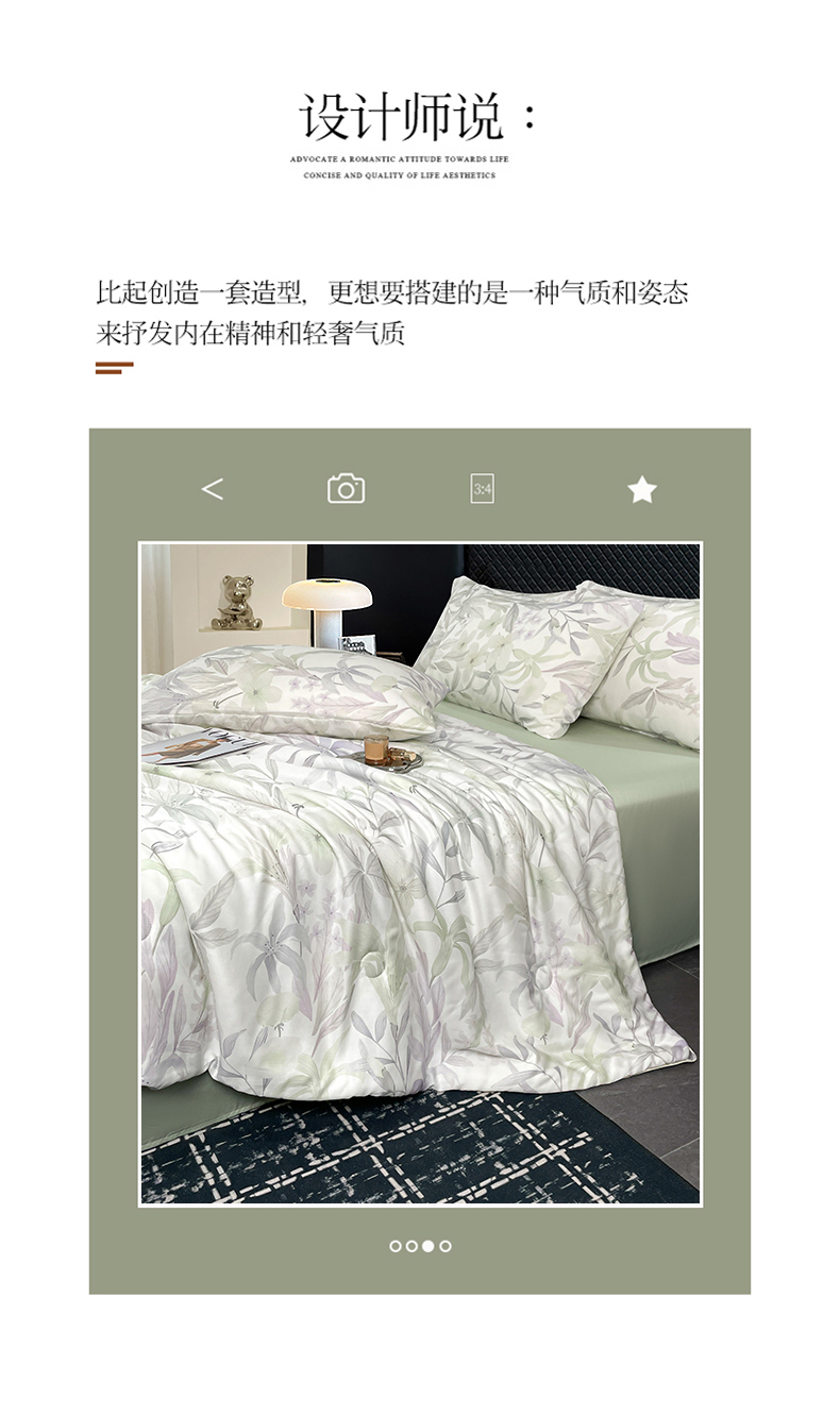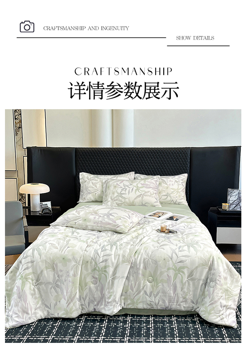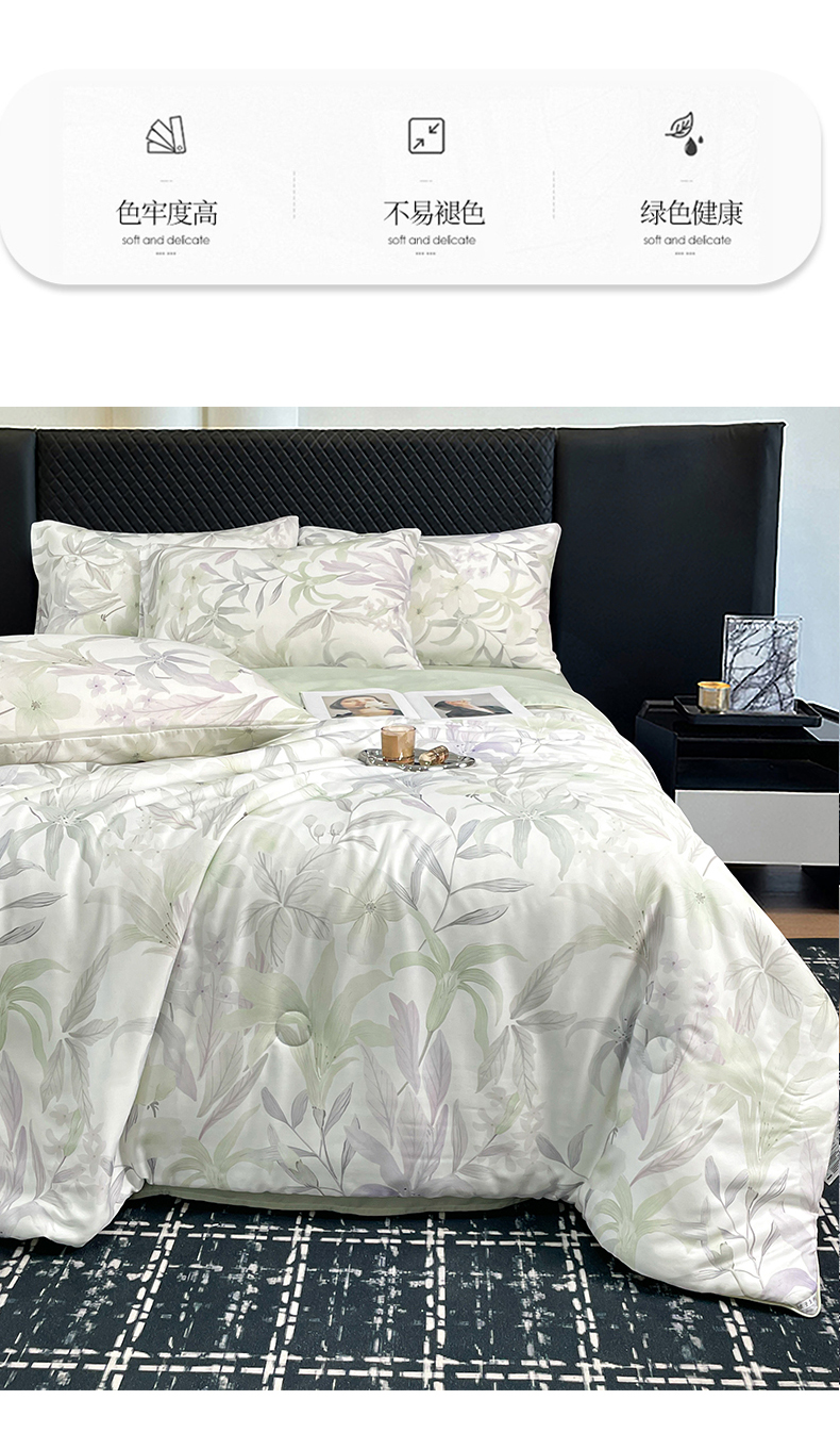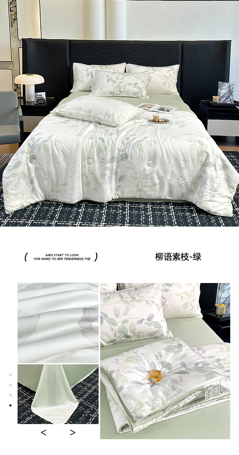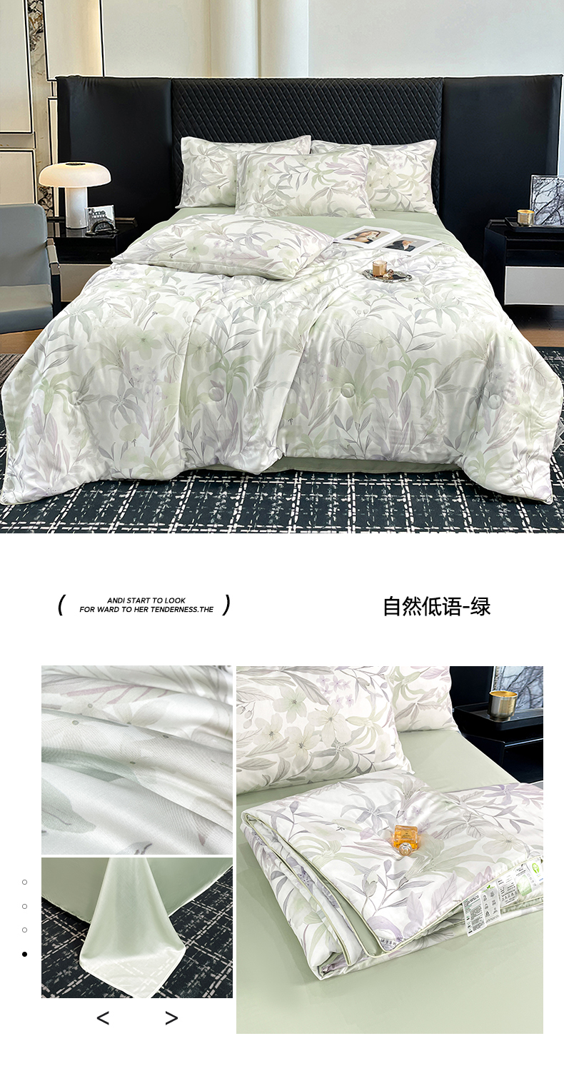 • 91家纺网 家纺一手货源 找家纺 尊妙被业 2026春夏新款莱赛尔天丝夏被蚕蛹蛋白夏被夏凉被空调被四件套-印花款 自然低语-绿