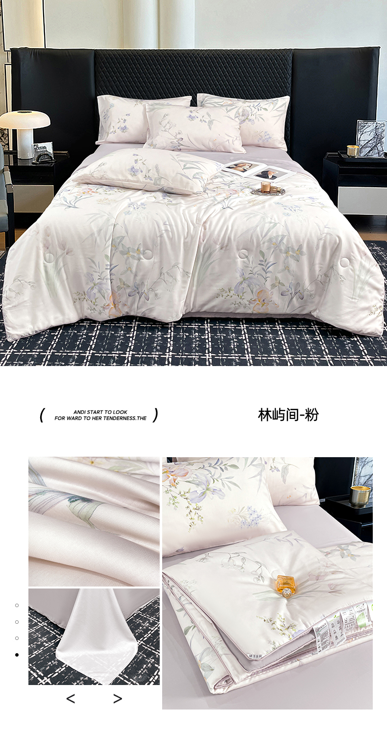 • 91家纺网 家纺一手货源 找家纺 (总)尊妙被业 2026春夏新款莱赛尔天丝夏被蚕蛹蛋白夏被夏凉被空调被四件套-印花款,暗香绘-棕,花颜外-蓝,林屿间-粉,林语花夏-米,柳语素枝-绿,蔓行-绿,沐初-兰,叶间绒雪-兰,自然低语-绿