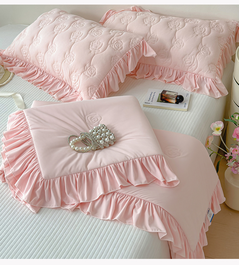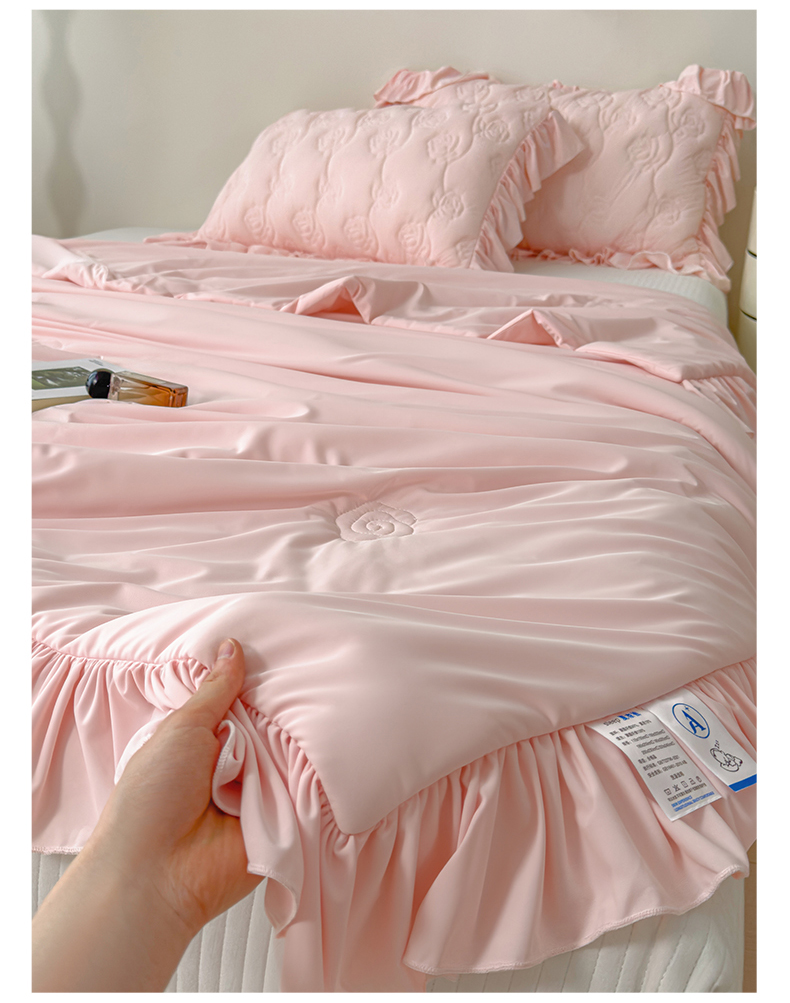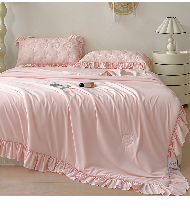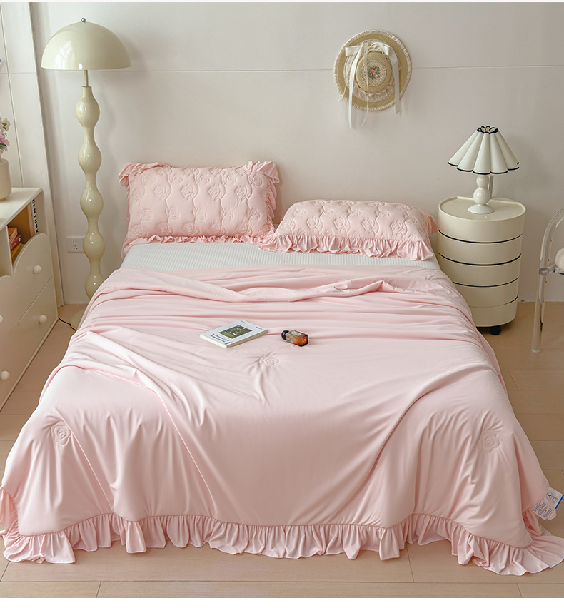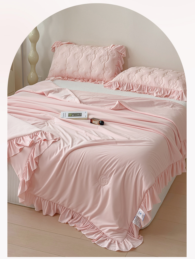 商品名称:雯豆家纺 【10A抗菌】2026新款氨纶凉感丝花边夏被夏凉被夏季冰丝空调被子被芯 氨纶花边夏被-浅粉