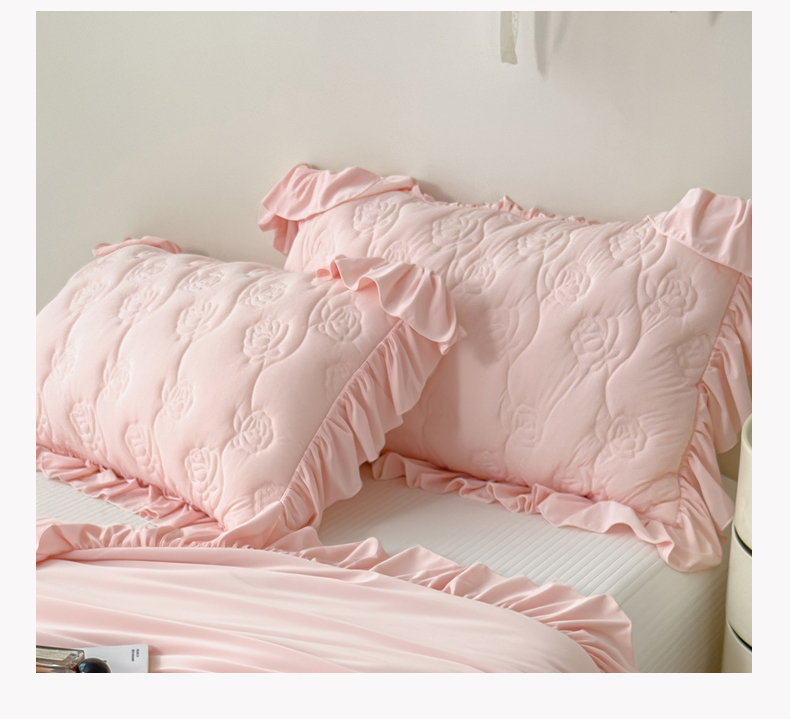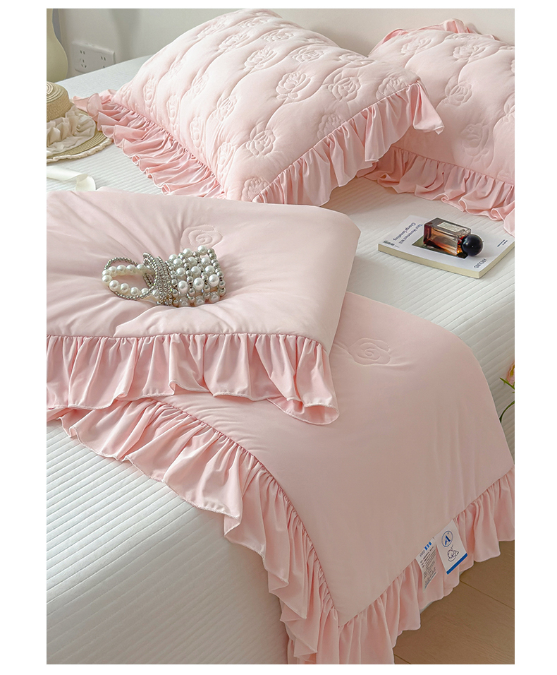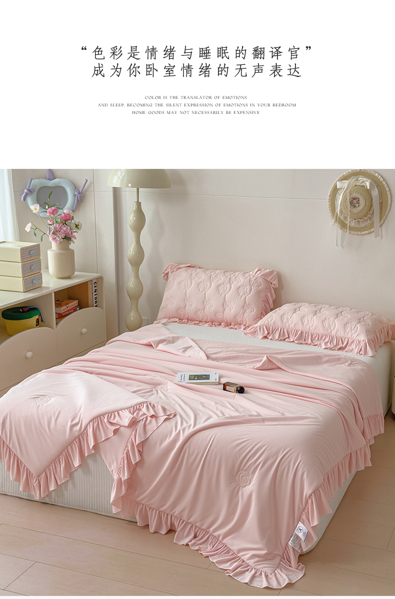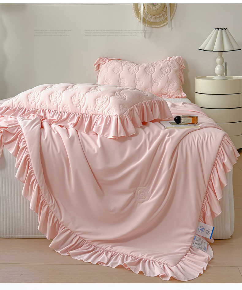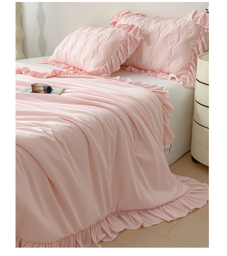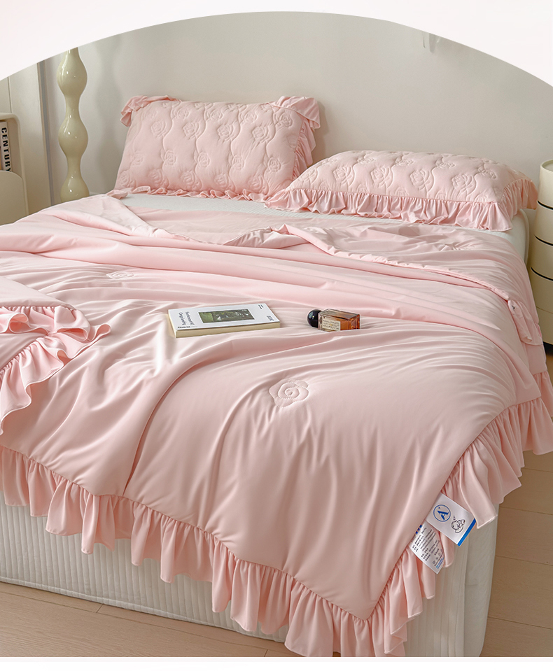 商品名称:雯豆家纺 【10A抗菌】2026新款氨纶凉感丝花边夏被夏凉被夏季冰丝空调被子被芯 氨纶花边夏被-浅粉