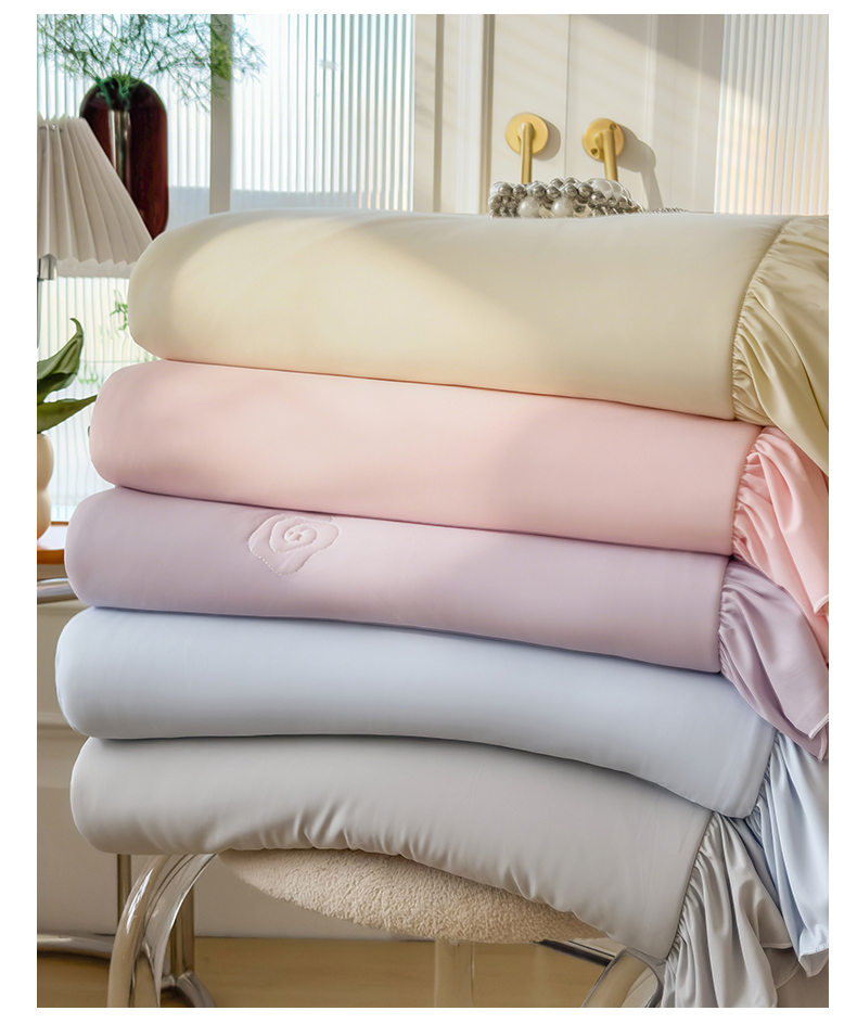(总)雯豆家纺 【10A抗菌】2026新品氨纶凉感丝花边床笠三件套+花边夏被夏凉被四件套,氨纶花边床笠-香芋紫,氨纶花边床笠-奶黄,氨纶花边床笠-浅粉,氨纶花边床笠-浅灰,氨纶花边床笠-水蓝,组合