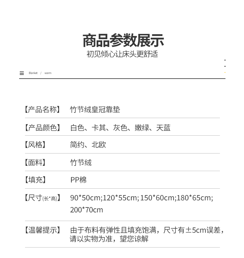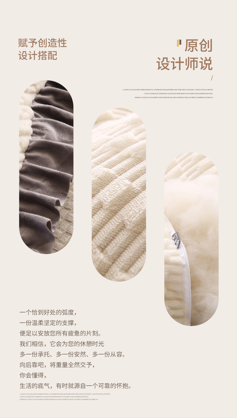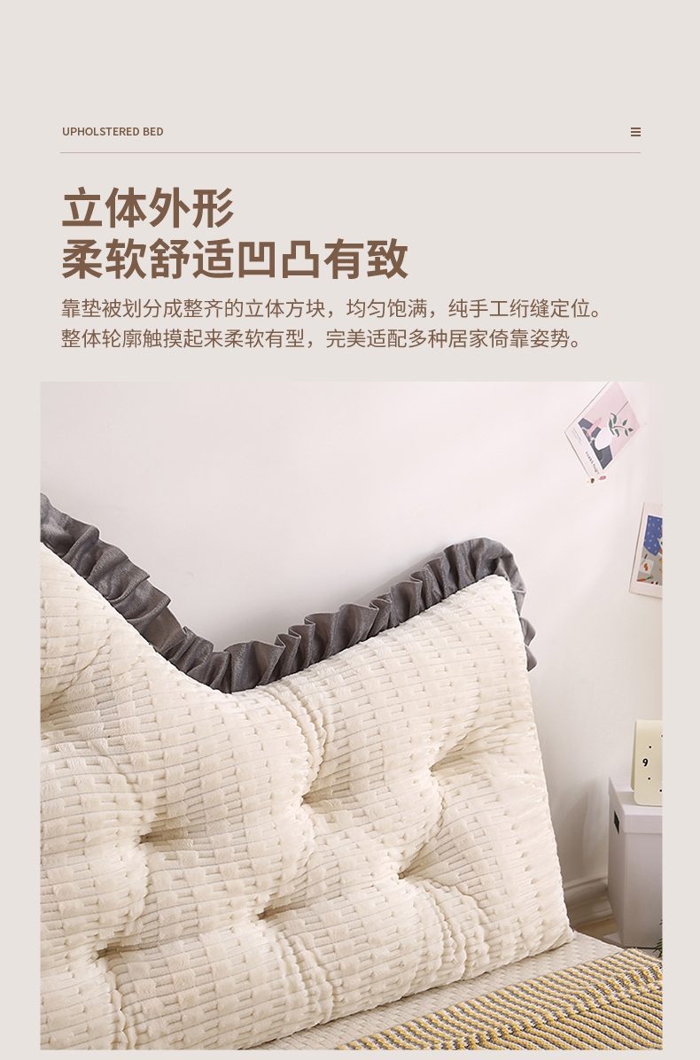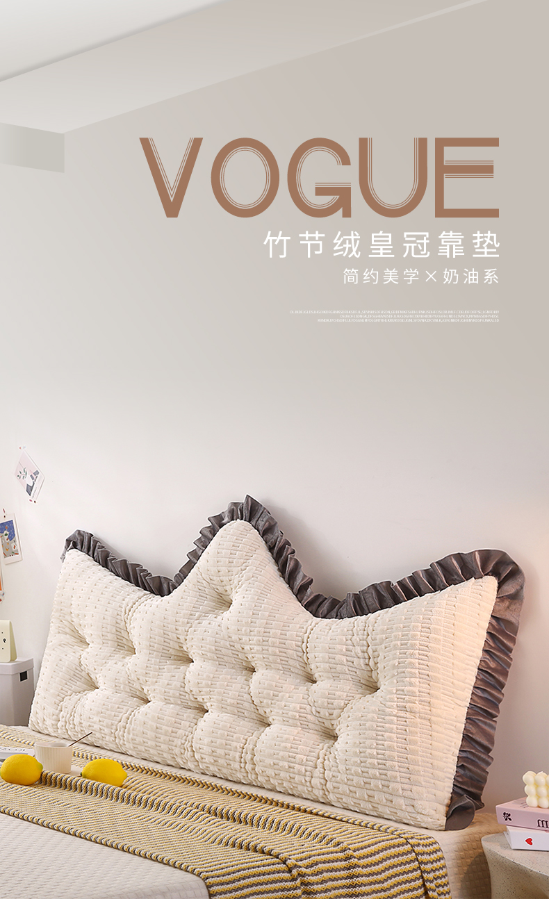 (总)永光家居 2026新款竹节绒皇冠靠枕床头靠垫抱枕大靠背,米白,浅蓝,绿色,灰色,驼色