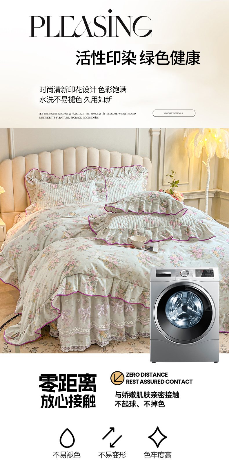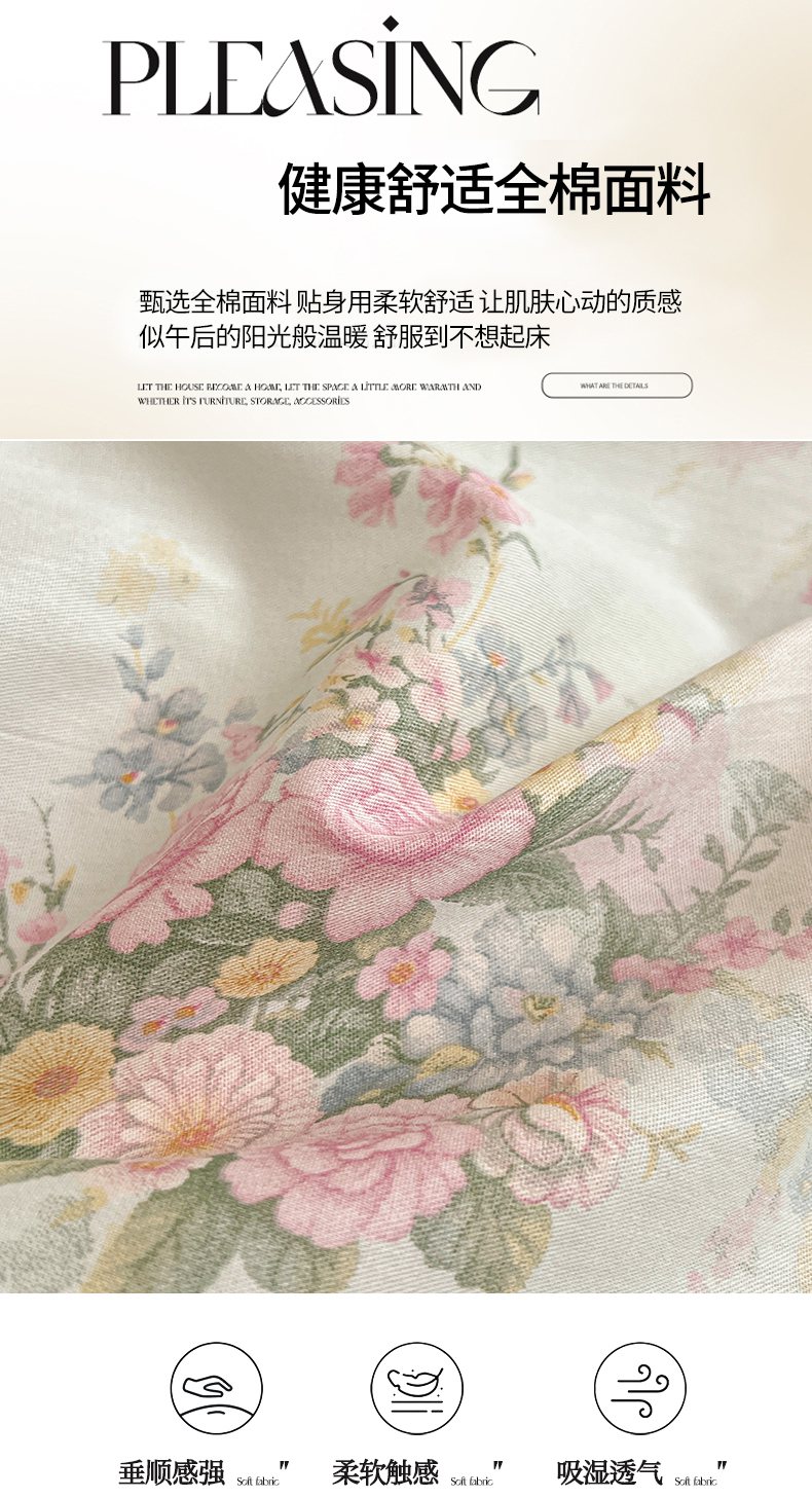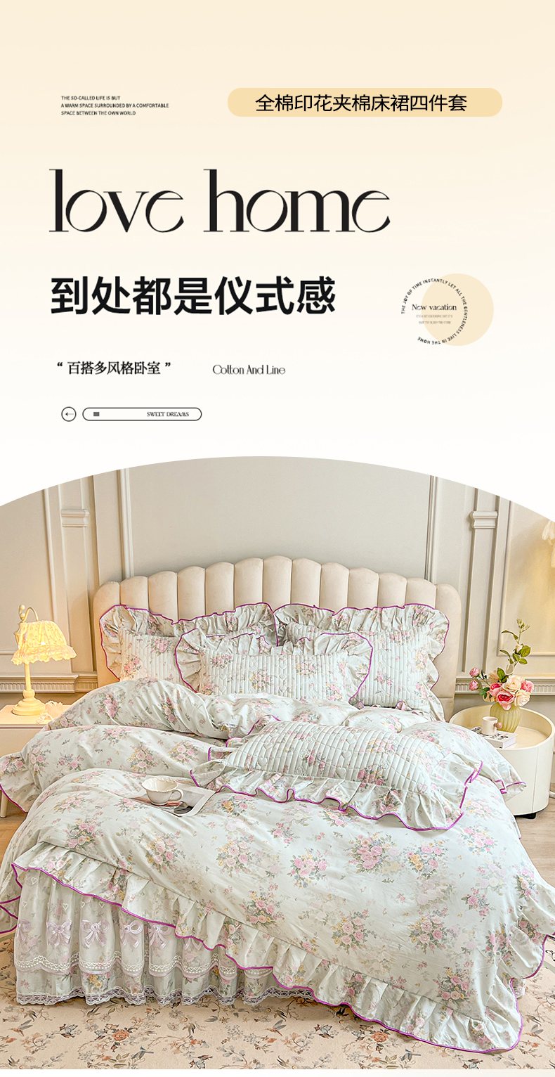 当前位置: 91家纺网 > 商品网购 > 床品套件 > 四件套 > 全棉普通四件套 > 宜凡家纺 2026新款全棉印花公主风夹棉床裙四件套 朝花心悦