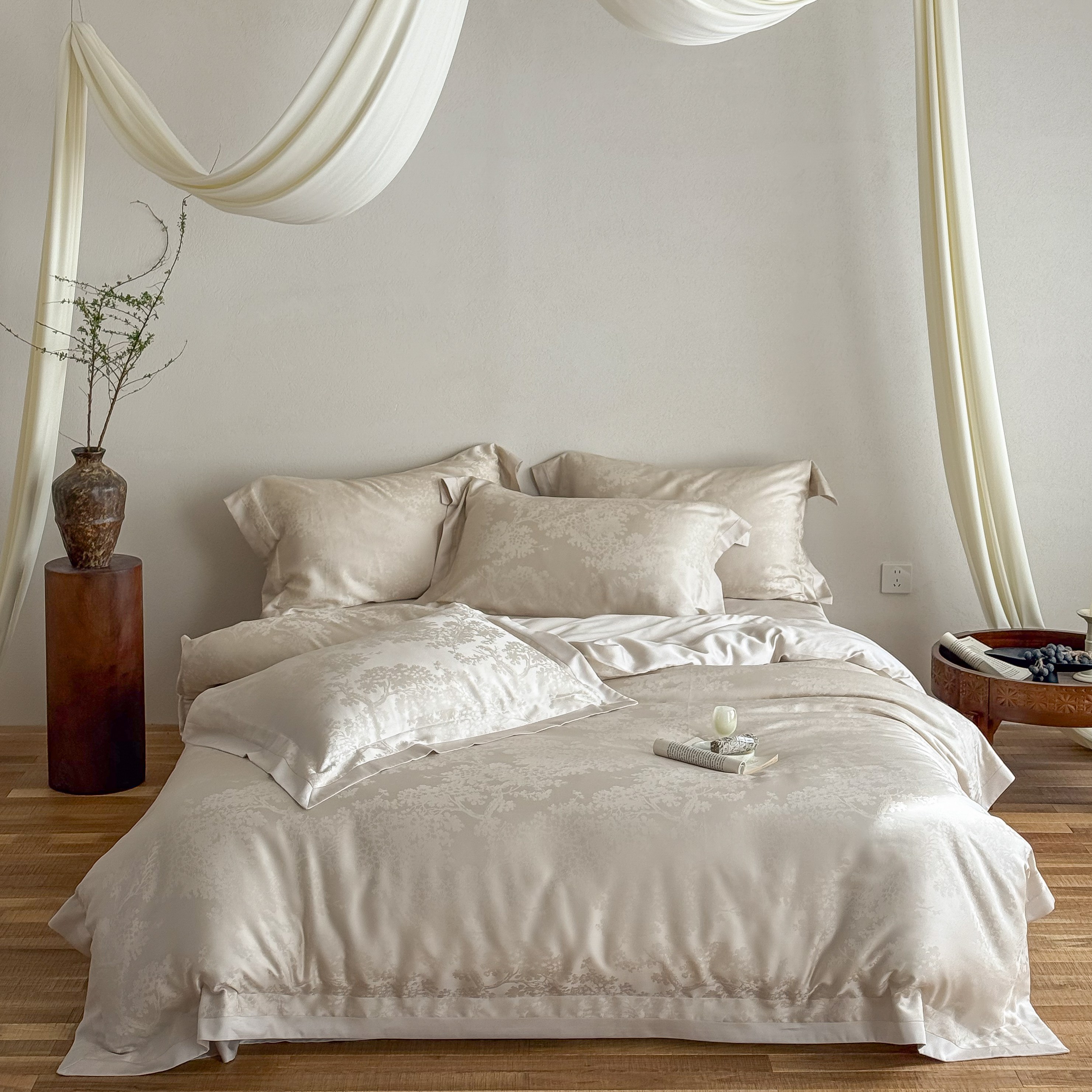 商品名称:花时间 2026春夏新款60s兰精天丝染色提花四件套 悠野-香槟
