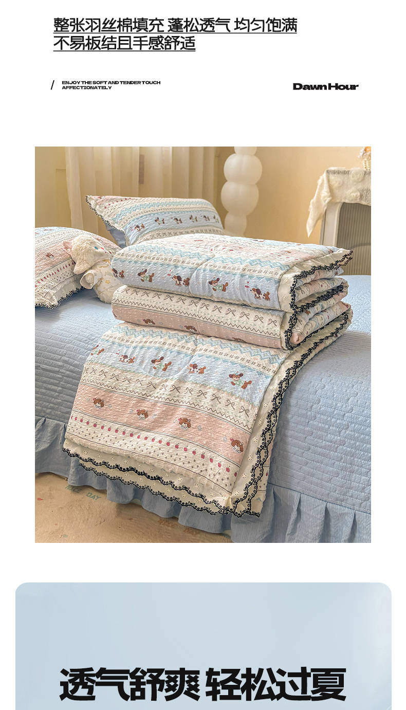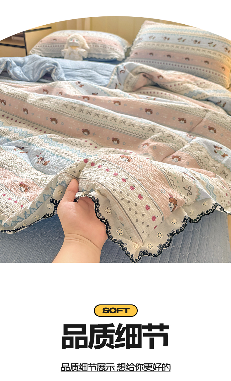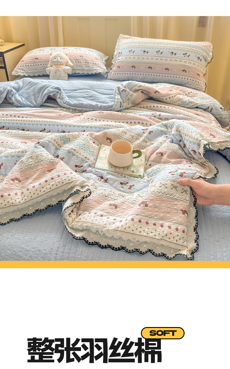 (总)慕希 2025新款水洗棉花边夏被款夏凉被空调被床盖夏被四件套,赫本-爱心白,赫本-蝴蝶结粉,赫本-可可玉,赫本-奶味蓝,赫本-奶油白,赫本-柔光蓝