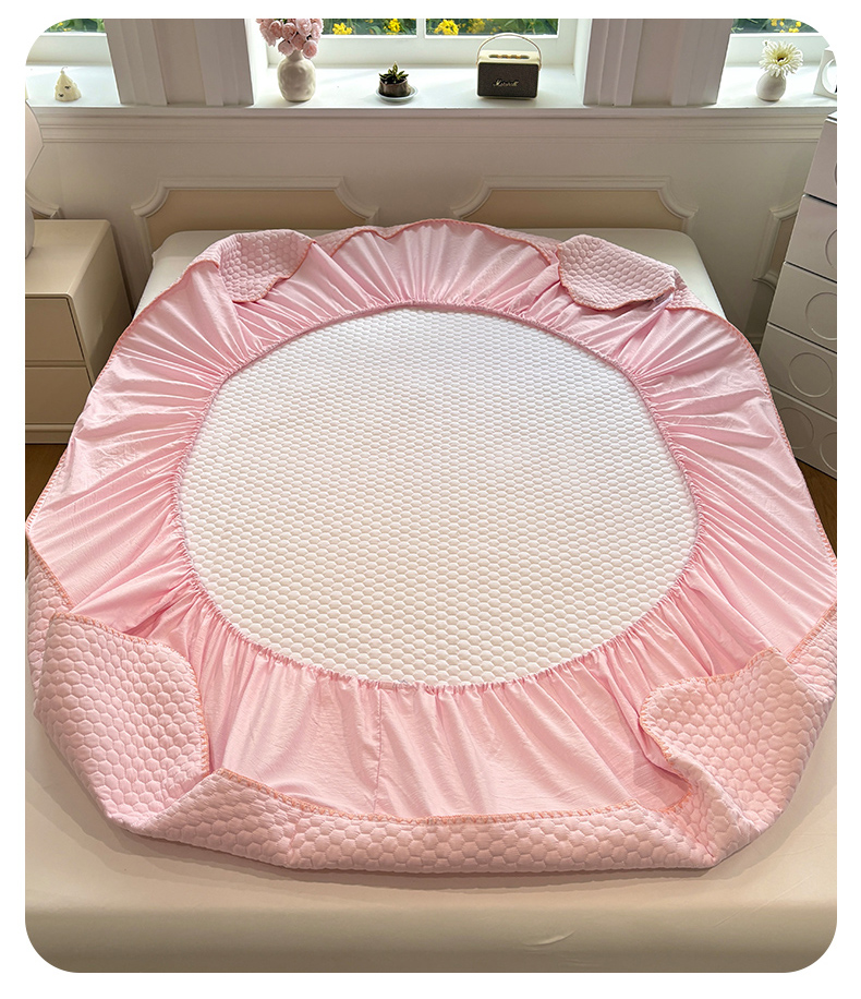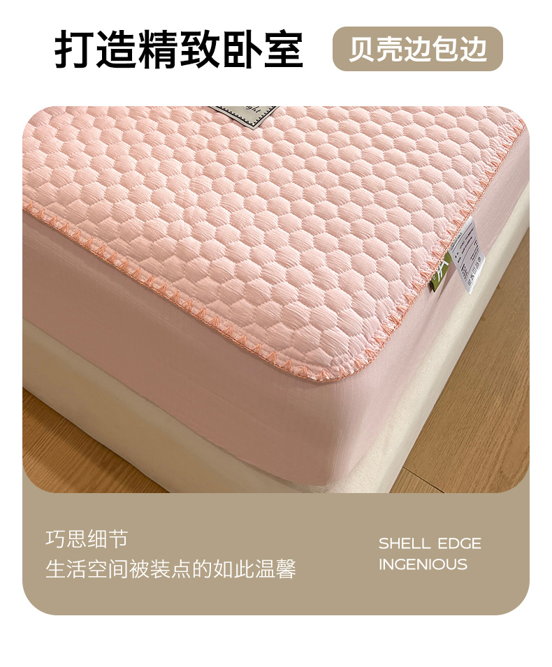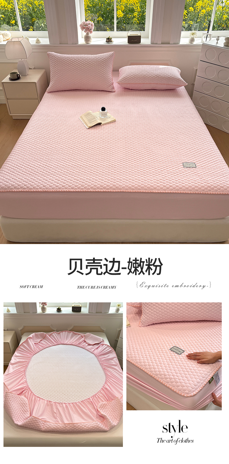 商品名称:居眠 2026新款贝壳边纯色夹棉床笠 贝壳边-嫩粉
