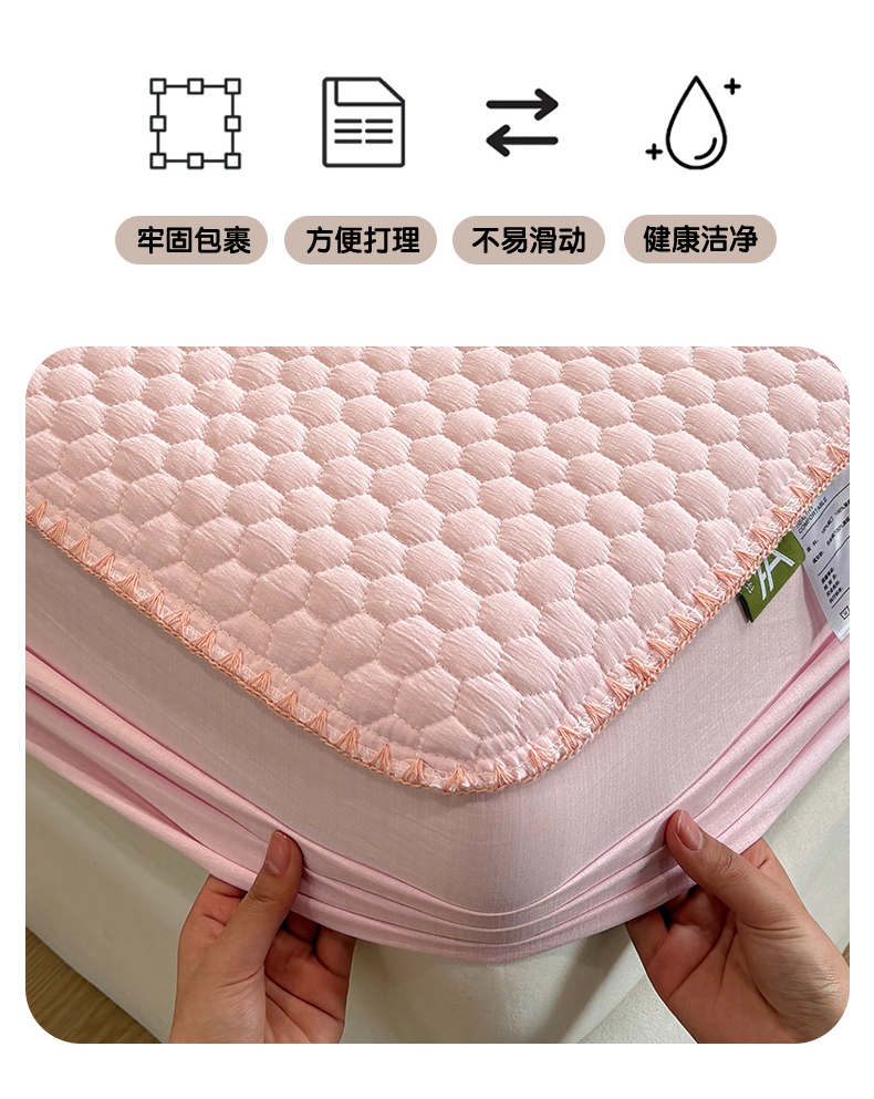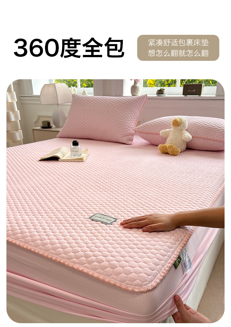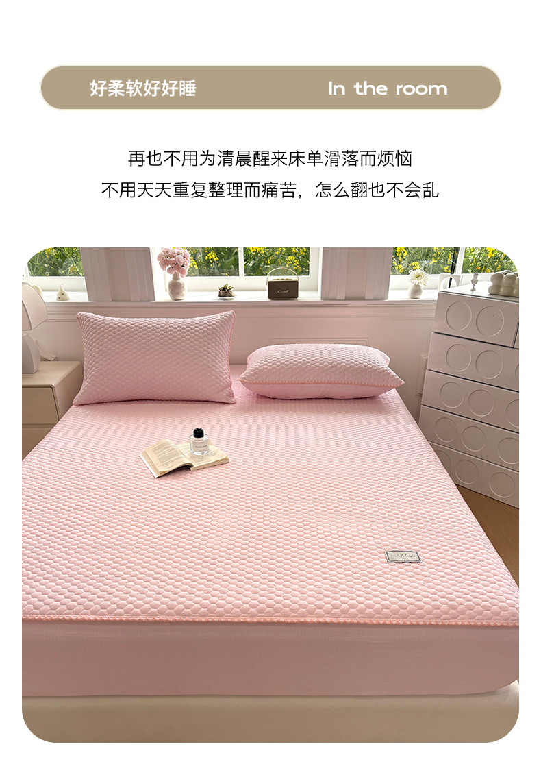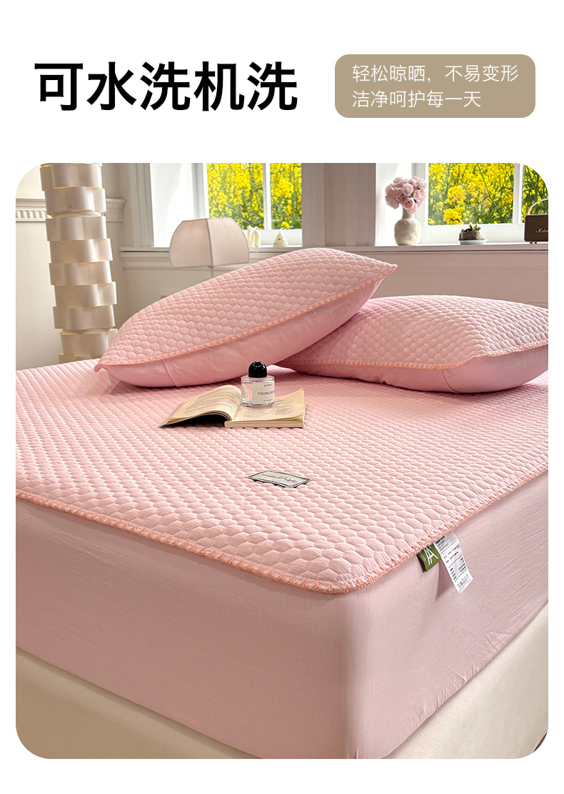 (总)居眠 2025新款防水夹棉床笠-清雅,清雅-粉色,清雅-灰色,清雅-卡其,清雅-绿色,清雅-米白,清雅-深蓝