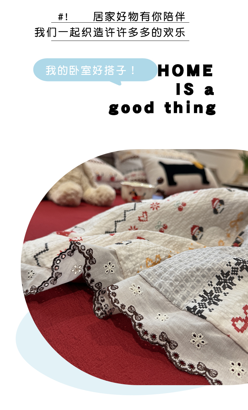 水墨江南 2026新款泡芙纱全棉花边夏被四件套 花边夏被-小狗日记
