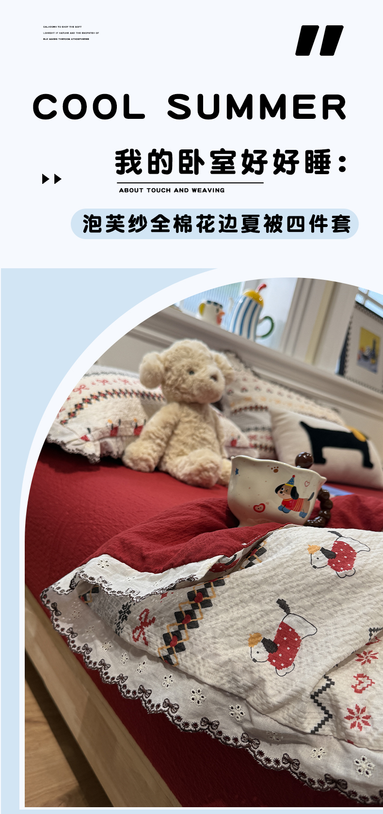 (总)水墨江南 2026新款泡芙纱全棉花边夏被四件套,花边夏被-啵啵猫,花边夏被-粉黛佳人,花边夏被-粉黛小兔,花边夏被-红色星仔,花边夏被-蝴蝶结果果,花边夏被-花季,花边夏被-黄色星仔,花边夏被-咖啡小熊,花边夏被-可爱云朵,花边夏被-慕秋,花边夏被-甜果果,花边夏被-甜甜猫,花边夏被-条纹狗,花边夏被-条纹星仔,花边夏被-小狗日记,花边夏被-樱桃啵啵