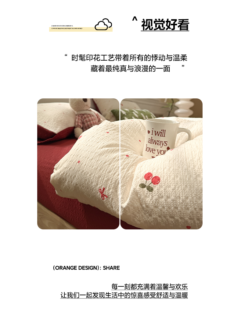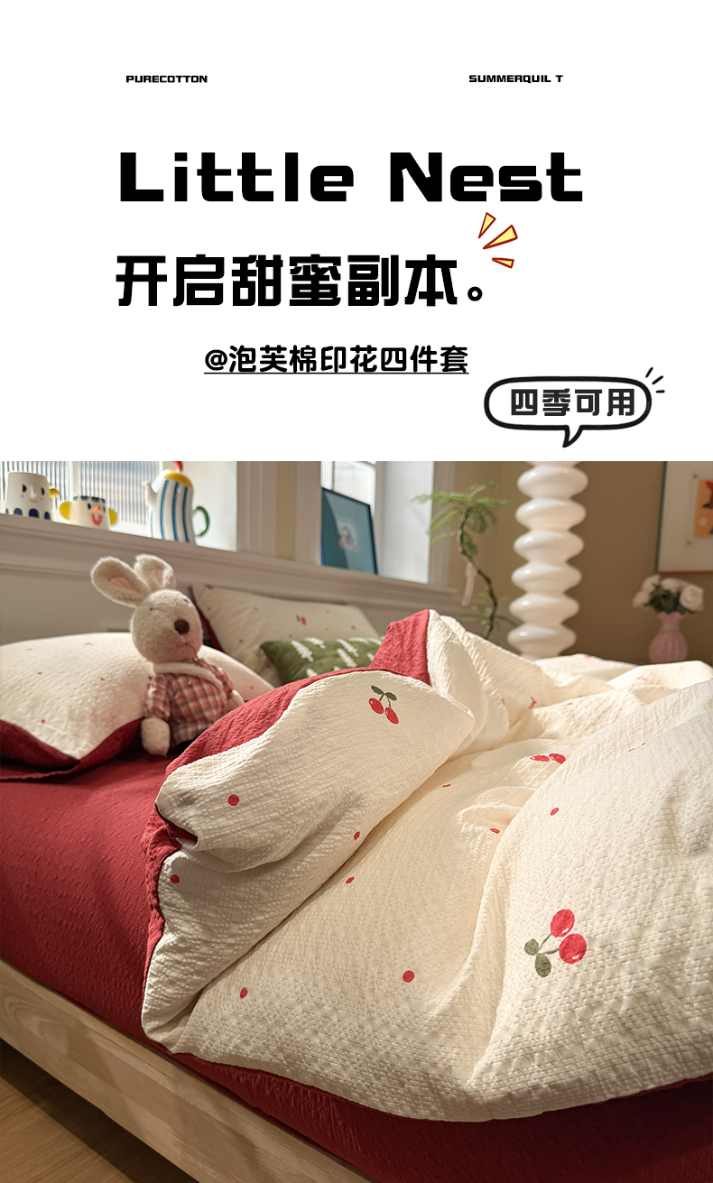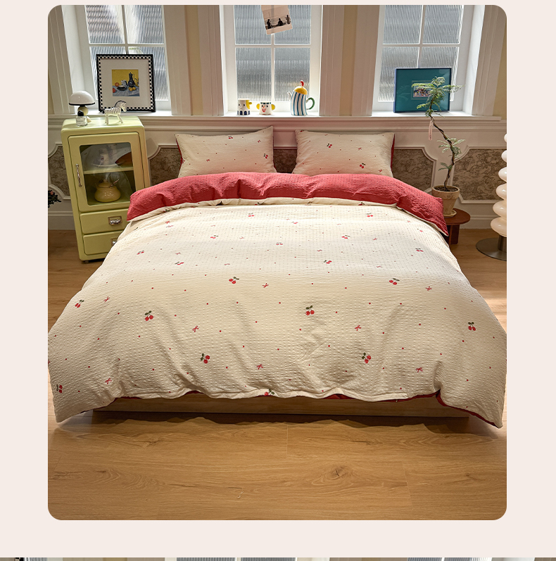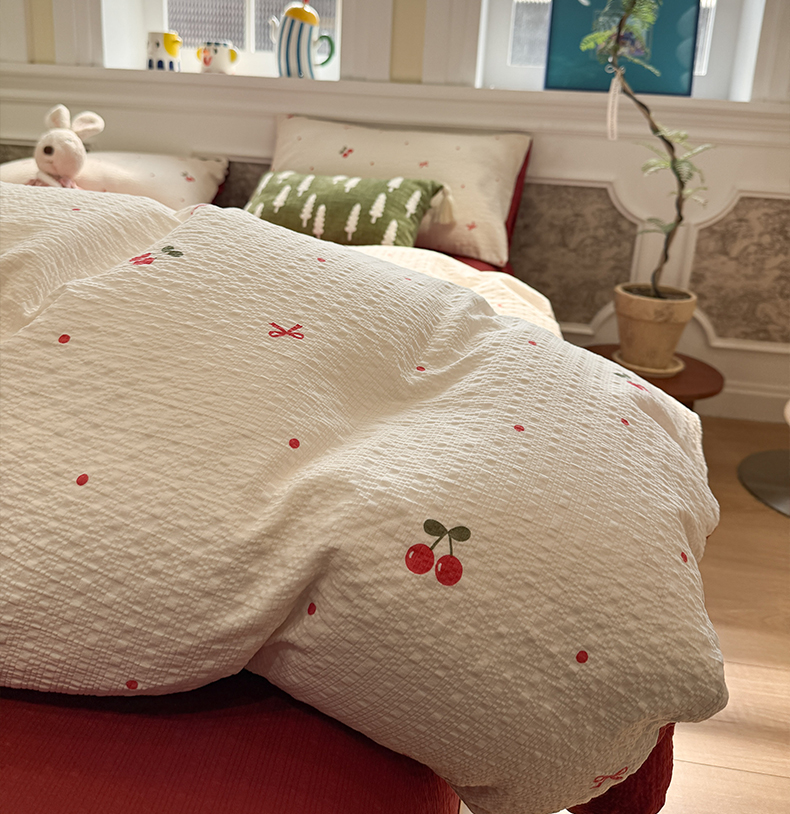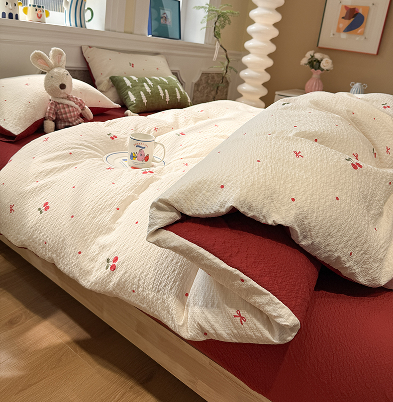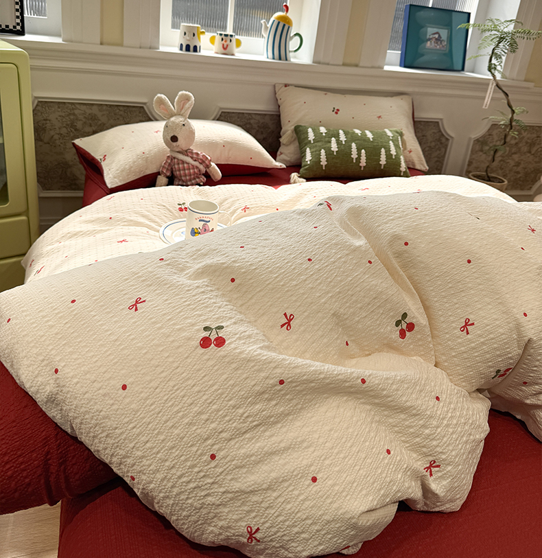 当前位置: 91家纺网 > 商品网购 > 床品套件 > 四件套 > 化纤普通四件套 > 水墨江南 2026直播热款泡芙棉双层纱四件套 樱桃啵啵