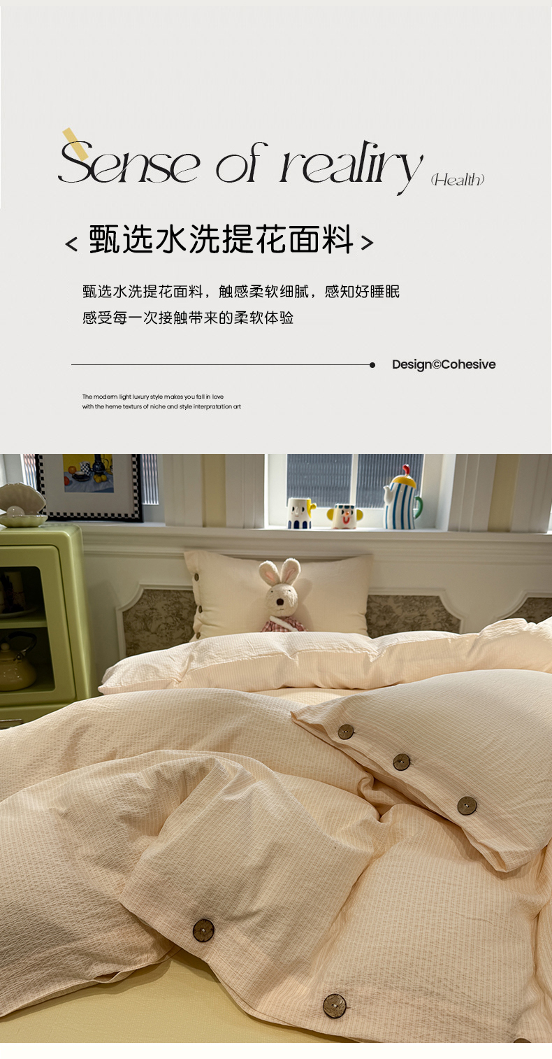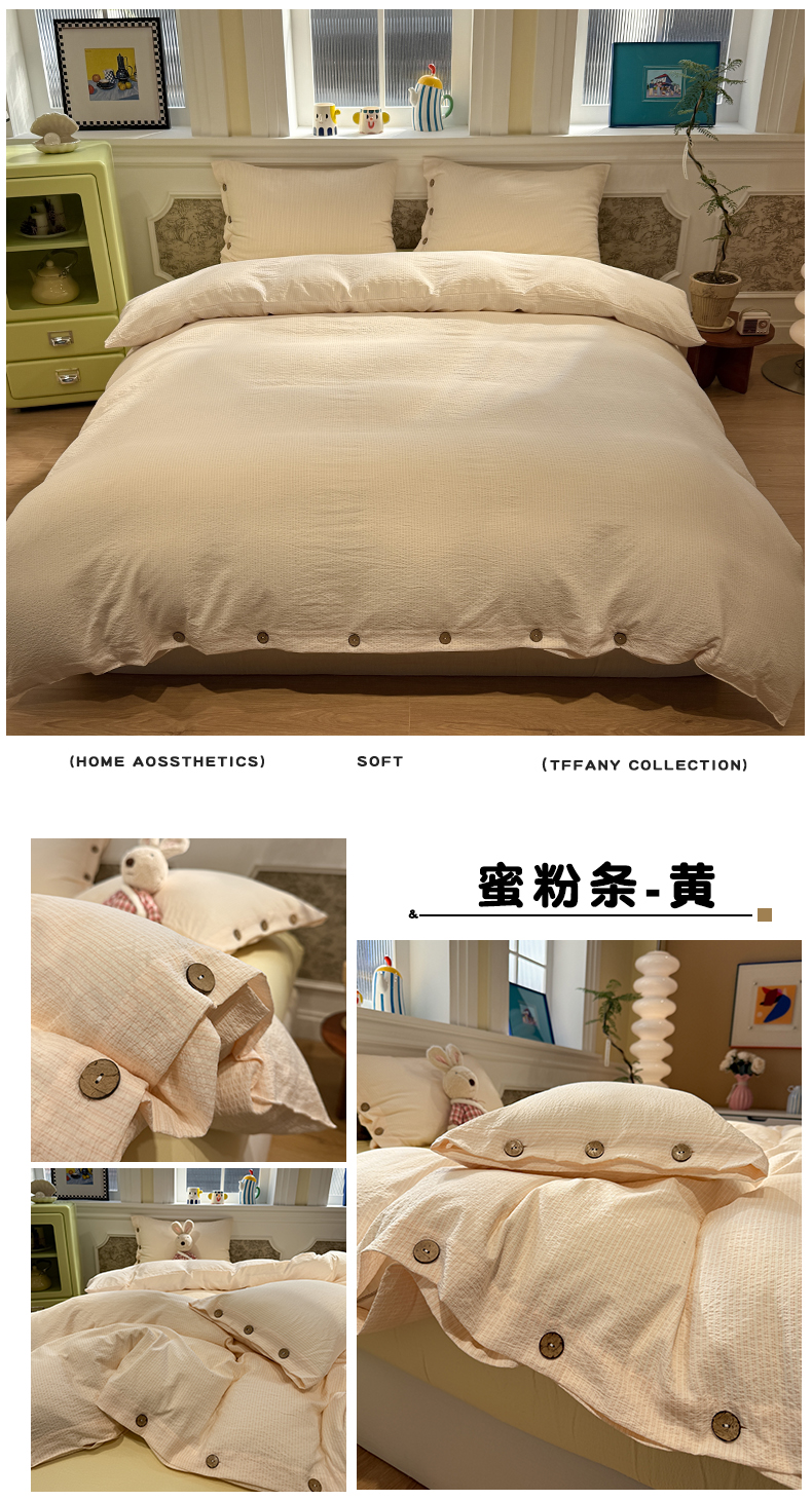 当前位置: 91家纺网 > 商品网购 > 床品套件 > 四件套 > 化纤普通四件套 > 水墨江南 2026新款无印风水洗提花纽扣款四件套 蜜粉条-黄