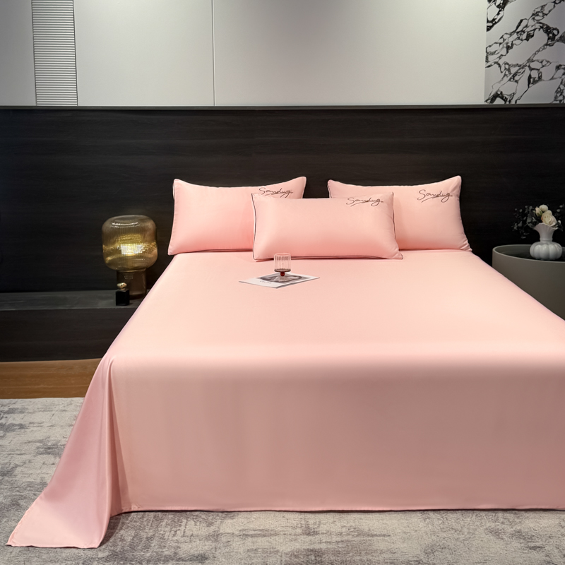 云恋家纺 2026新款夏季冰丝床单单件凉感被单学生宿舍单人枕套三件套双人垫单 浪漫假日-樱花粉