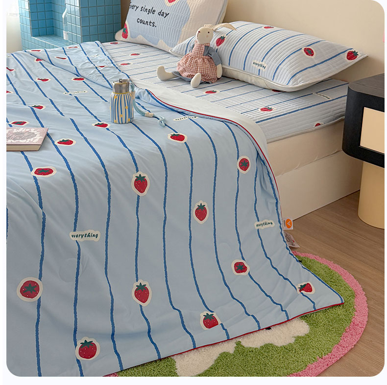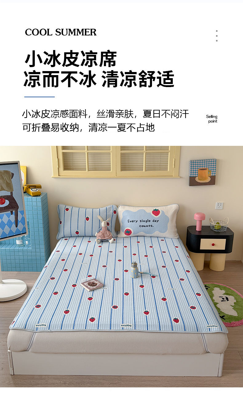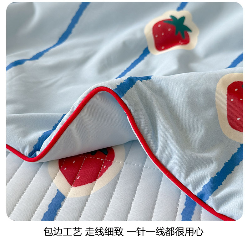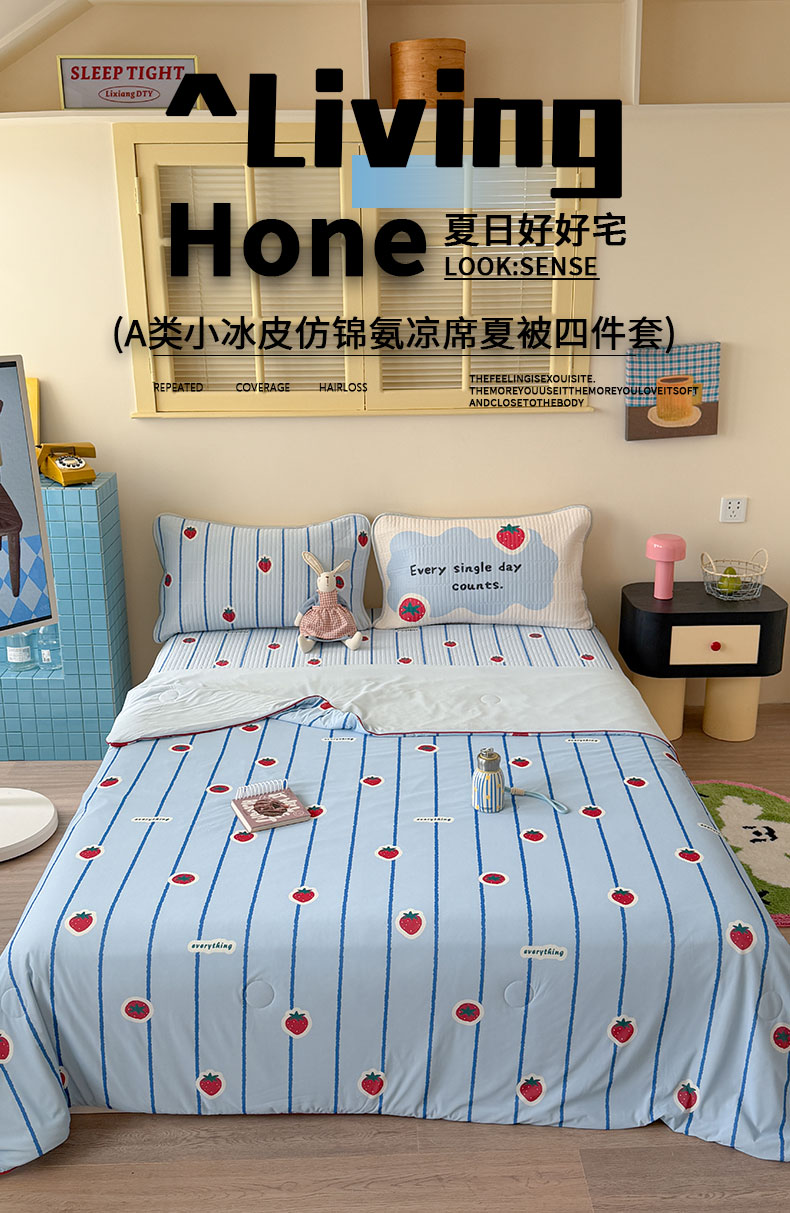 • 91家纺网 家纺一手货源 找家纺 桃子家居 2026新款A类小清新卡通数码印花混搭小冰皮夏被夏凉被空调被席子凉席四件套 小冰皮-冰蓝草莓