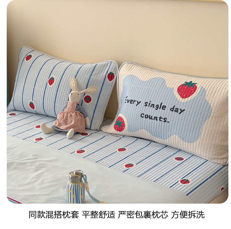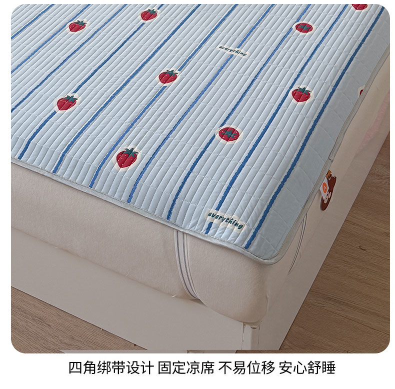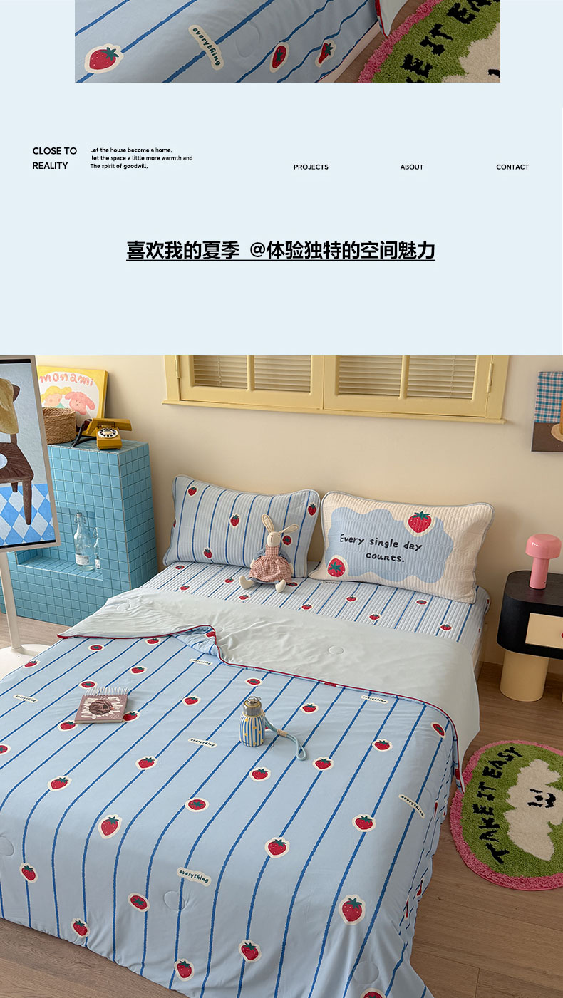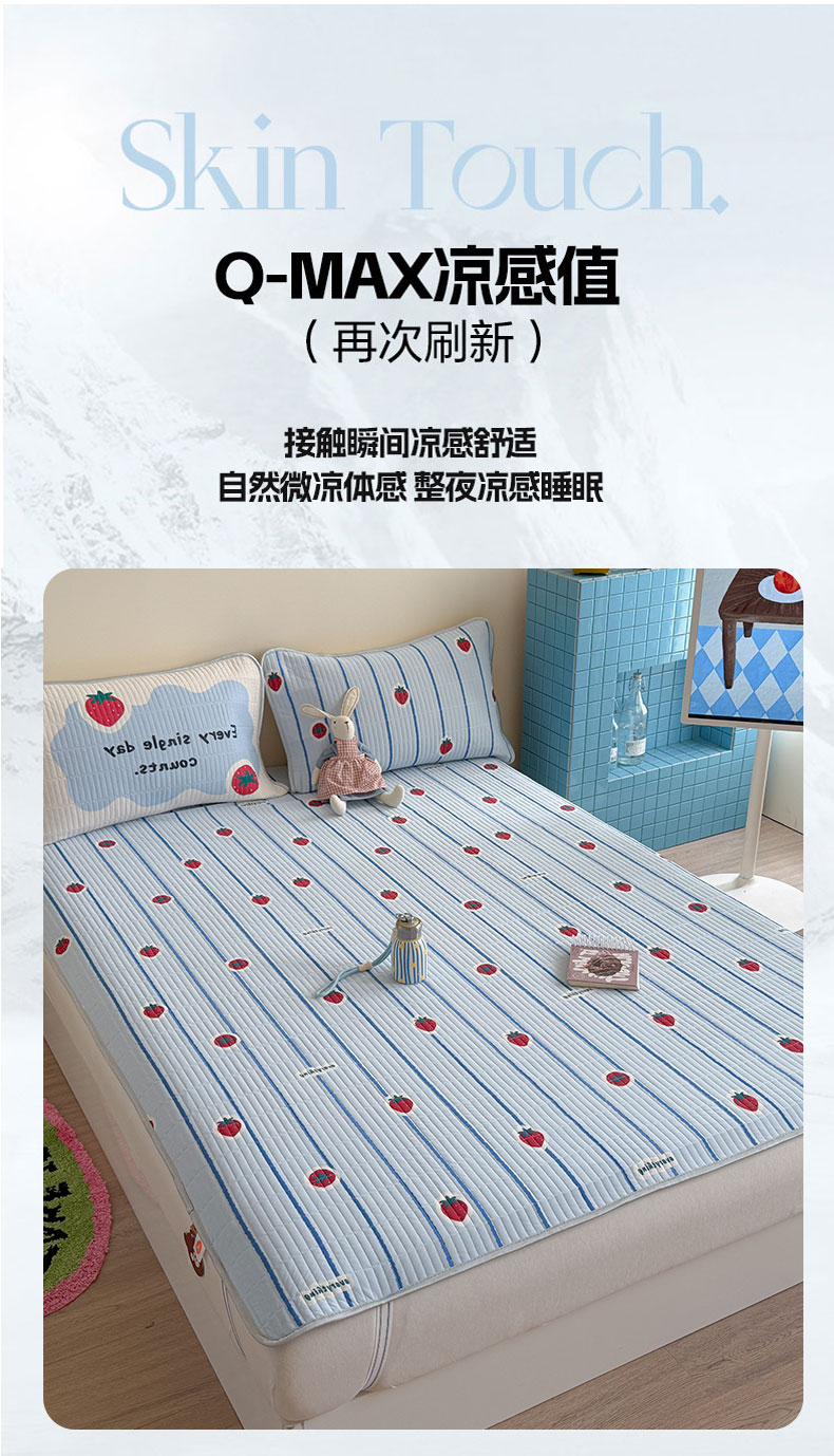 • 91家纺网 家纺一手货源 找家纺 桃子家居 2026新款A类小清新卡通数码印花混搭小冰皮夏被夏凉被空调被席子凉席四件套 小冰皮-冰蓝草莓