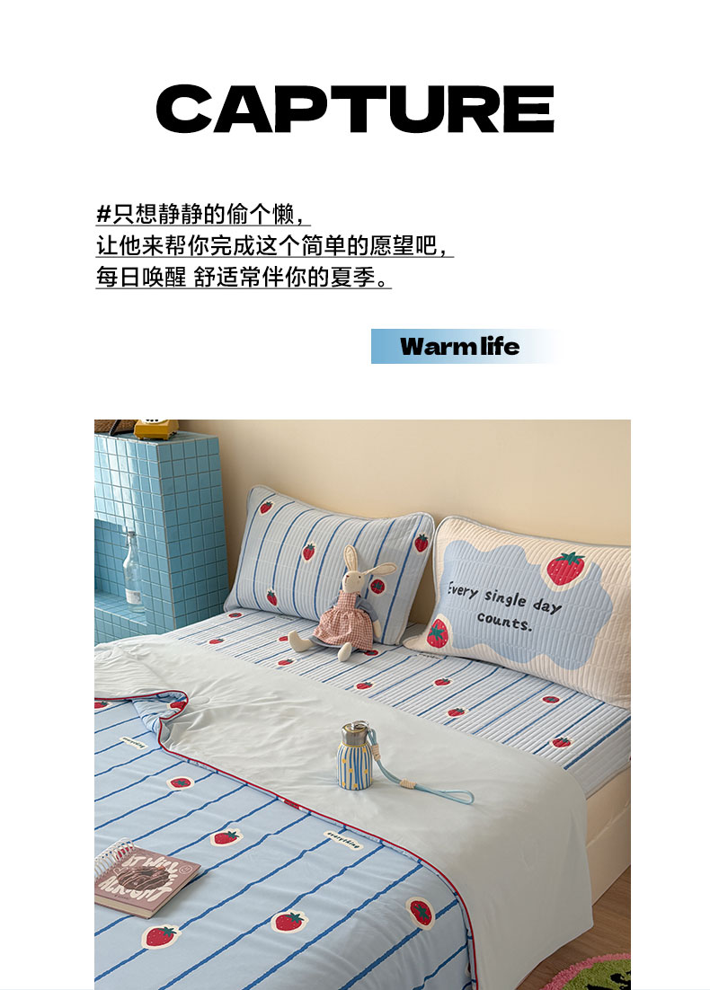 当前位置: 91家纺网 > 商品网购 > 被子 > 夏被 > 桃子家居 2026新款A类小清新卡通数码印花混搭小冰皮夏被夏凉被空调被席子凉席四件套 小冰皮-冰蓝草莓