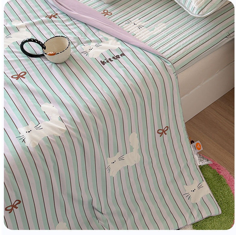 当前位置: 91家纺网 > 商品网购 > 被子 > 夏被 > 桃子家居 2026新款A类小清新卡通数码印花混搭小冰皮夏被夏凉被空调被席子凉席四件套 组合图仅供展示不可下单