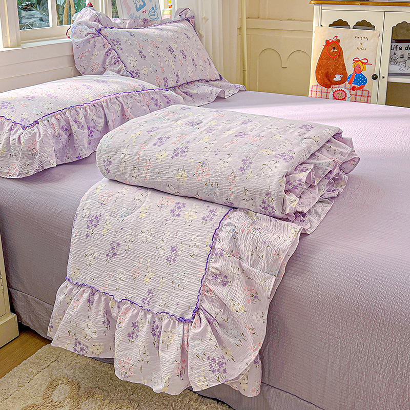 商品名称:(总)一比一家纺 2026春夏新款法式大花边木棉皱皱纱夏被夏凉被空调被四件套