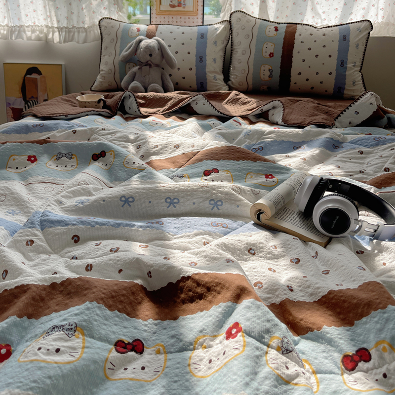 (总)禾沐 2026新款泡芙纱三角针床盖夏被四件套,波点,粉色小心心,格格心,旧街星星,咖豹纹,兰爱心,描线小猫粉,描线小猫咖,浅川纹,森林描绘,田园兔,星光凯蒂,只闻花香,紫陌,KT 猫