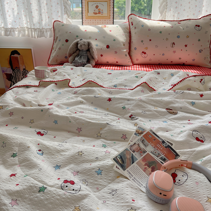 (总)梵希雅 2026新款泡芙纱三角针床盖夏被四件套,波点,粉色小心心,格格心,旧街星星,咖豹纹,兰爱心,描线小猫粉,描线小猫咖,浅川纹,森林描绘,田园兔,星光凯蒂,只闻花香,紫陌,KT 猫